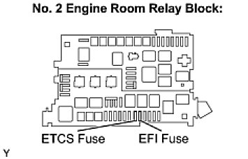 (1) Disconnect the battery terminal or remove the EFI and ETCS fuses from the No. 2 engine room relay block for 60 seconds or more. However, if you disconnect the battery terminal, perform the "INITIALIZATION" procedure Programming and Relearning.