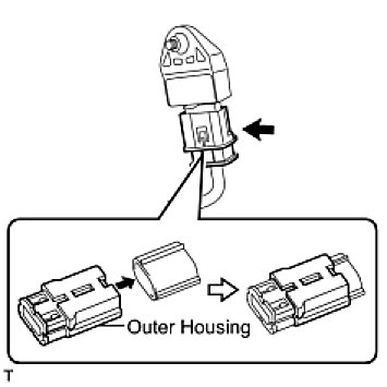 - If the rear airbag sensor LH has been dropped, or there are any cracks, dents or other defects in the case or connector, replace it with a new one.