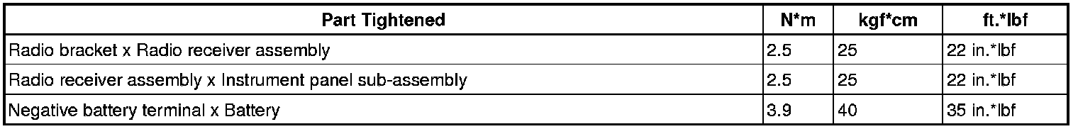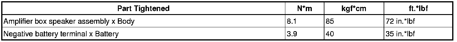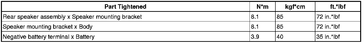 SERVICE SPECIFICATIONS: AUDIO / VISUAL: TORQUE SPECIFICATIONS