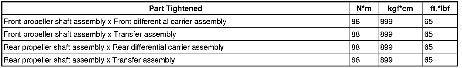 SERVICE SPECIFICATIONS: PROPELLER SHAFT: TORQUE SPECIFICATIONS