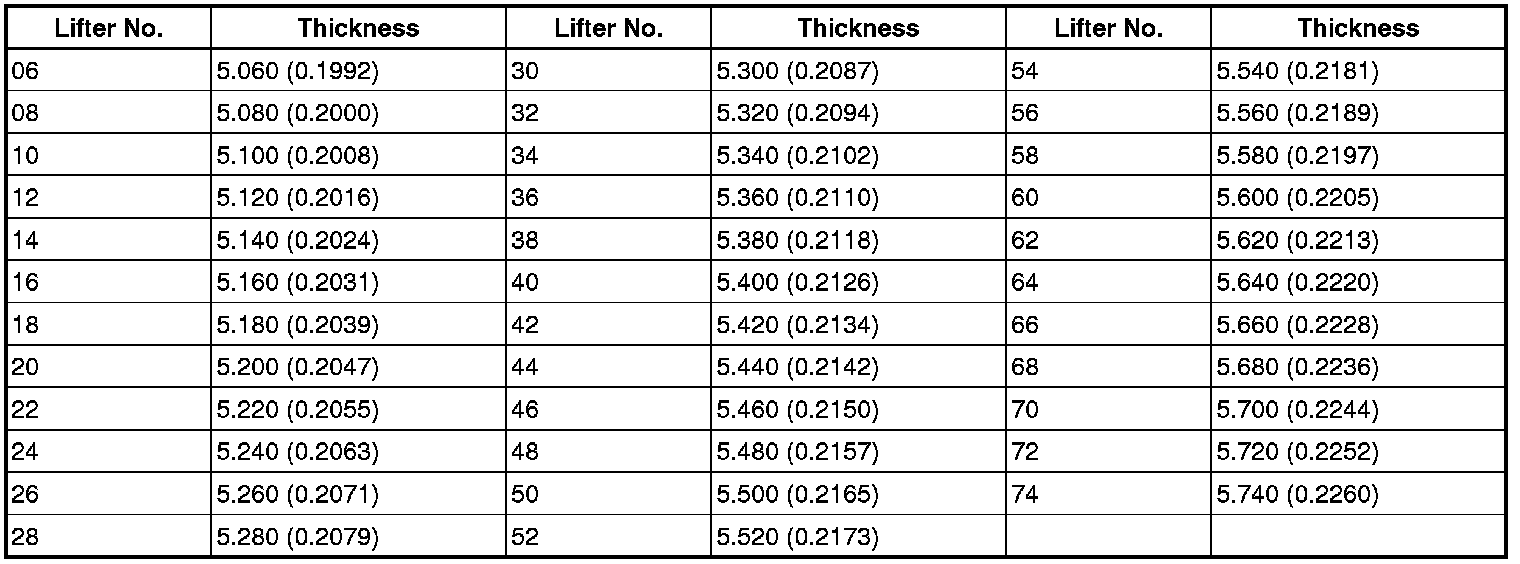 HINT: Lifters are available in 35 sizes in increments of 0.020 mm (0.0008 in.), from 5.060 mm (0.1992 in.) to 5.740 mm (0.2260 in.).