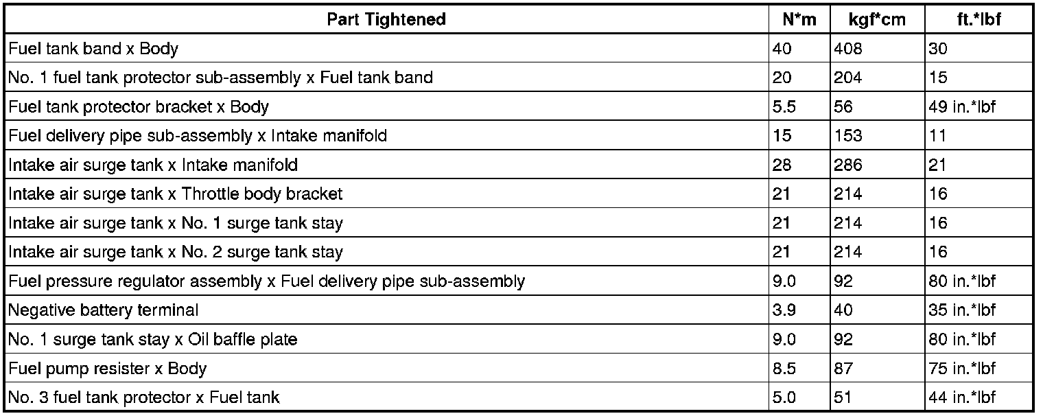 SERVICE SPECIFICATIONS: 1GR-FE FUEL: TORQUE SPECIFICATIONS