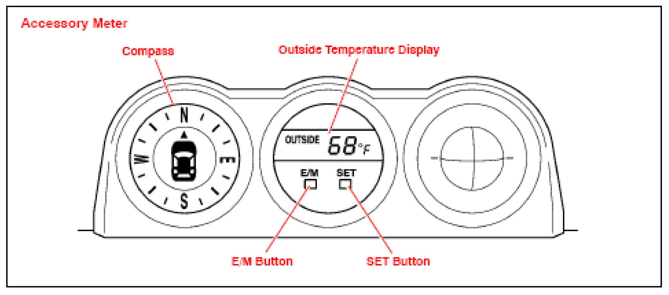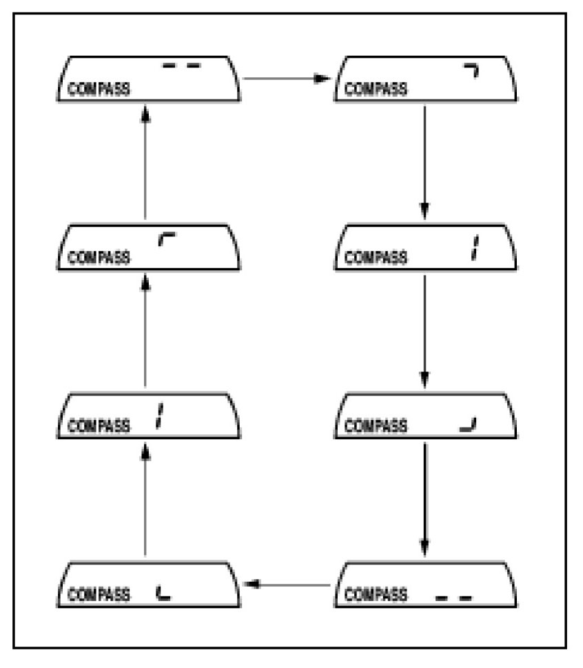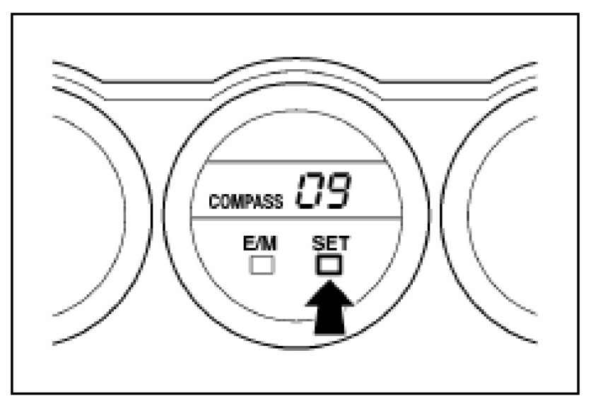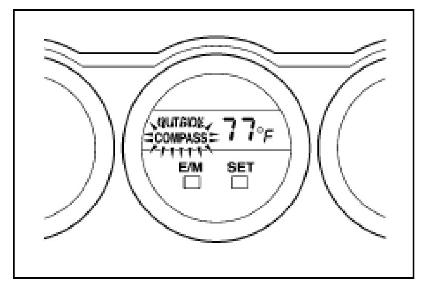 If step 3 is NOT performed within 6 seconds while in Compass Correction mode, the calibration is canceled, and the display returns to the outside temperature indication.