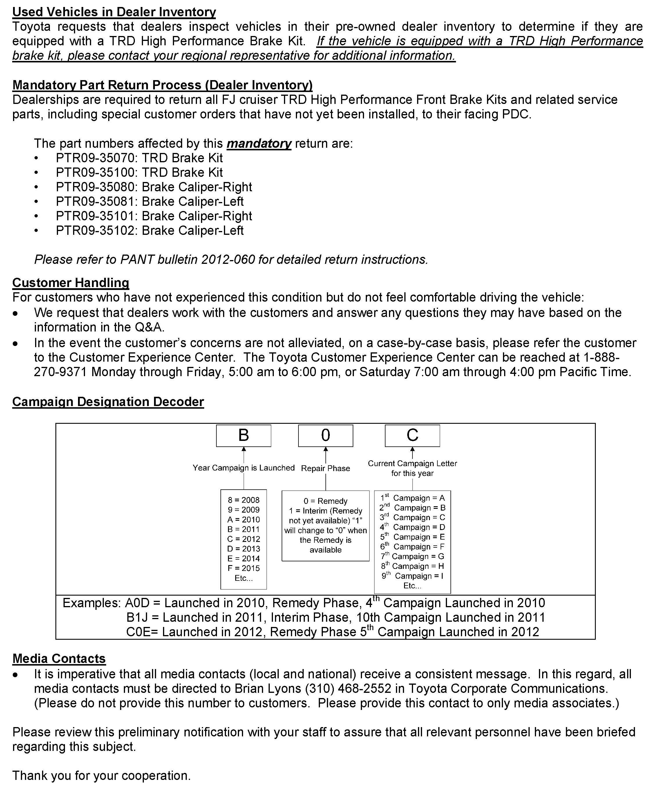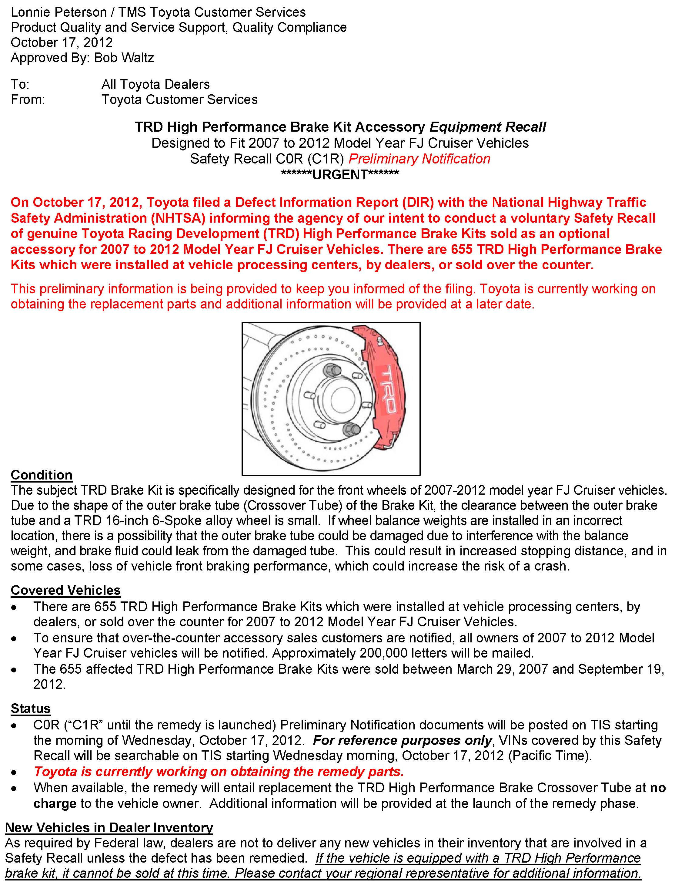 Recall - TRD Accessory Brake Kit Line/Wheel Interference