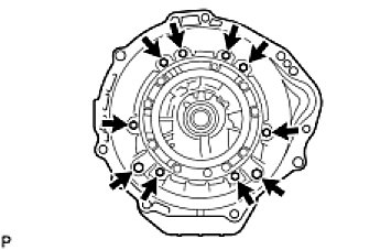 (a) Remove the 10 bolts holding the oil pump from the transmission case.