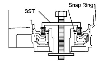 (a) Place SST on the spring retainer and compress the brake return spring.
