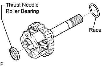 (b) Coat the No. 4 thrust bearing race and thrust needle roller bearing with petroleum jelly, and install them onto the center planetary ring gear.