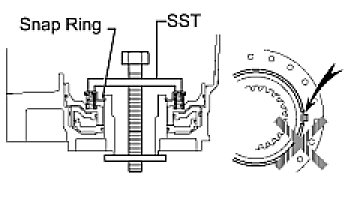 NOTE: Make sure that the end gap of the snap ring is not aligned with the spring retainer claw.