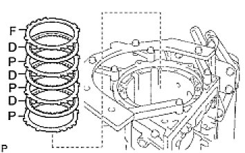 (d) Place the piston return spring onto the 1st and reverse brake piston.