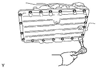 HINT: Remove the gasket and be careful not to spill oil on the contacting surfaces of the transmission case and oil pan.