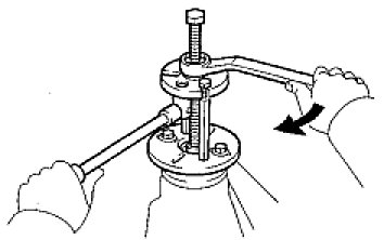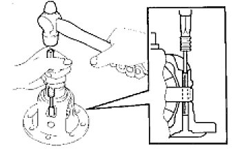 (b) Using a brass bar and hammer, tap in the oil storage ring.