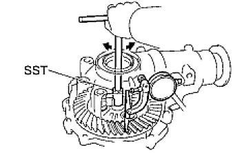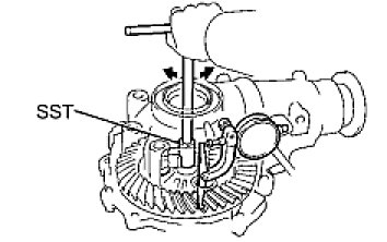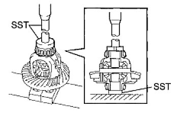 (a) Using SST and a press, press the bearing into the differential case.