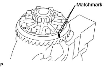 (e) Align the matchmarks on the ring gear with those of the differential case.
