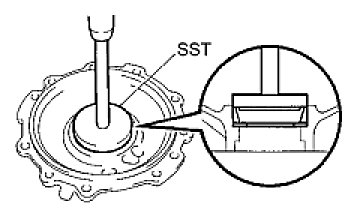 (b) Using SST and a plastic-faced hammer, tap in the oil seal.