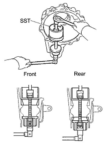 NOTE: Before using SST (center bolt), apply hypoid gear oil to its threads and tip.