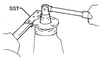 (d) Using SST to hold the companion flange in place, tighten the nut to the correct torque.
