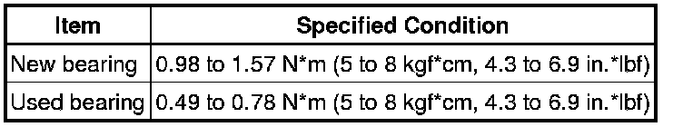 Total preload (at starting) - Torque: 0.22 to 0.88 Nm (6 to 9 kgf-cm, 1.9 to 8.8 in-lbf)drive pinion preload plus
