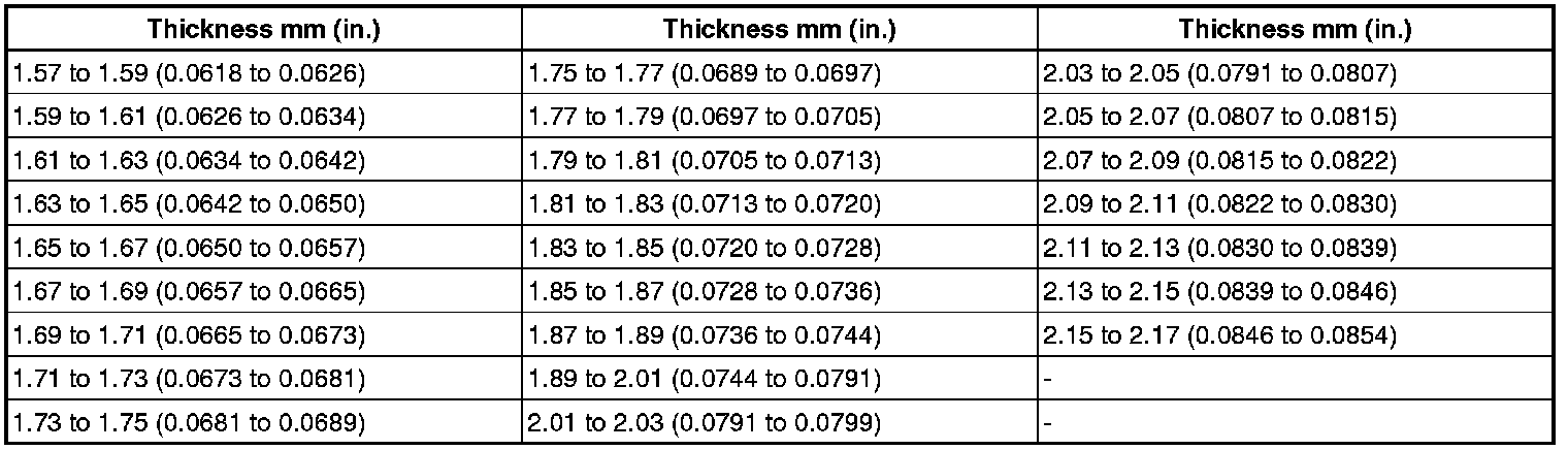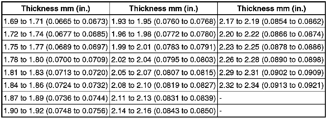 HINT: Using the table below, select 2 thrust washers which will ensure that the backlash is within the specifications.