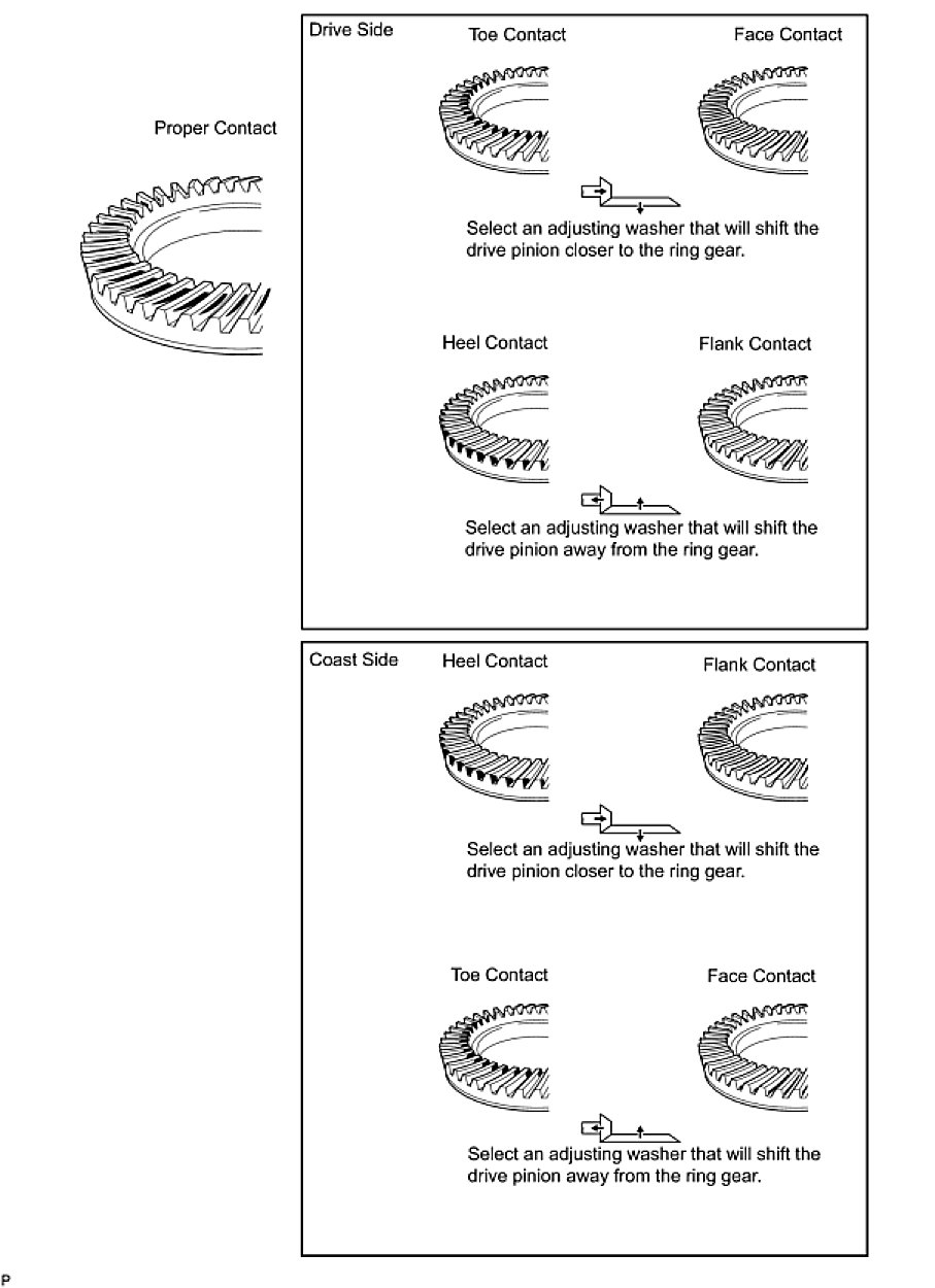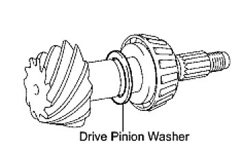 HINT: First fit a washer that has the same thickness as the removed washer. After checking the tooth contact pattern, replace the washer with one of a different thickness if necessary.