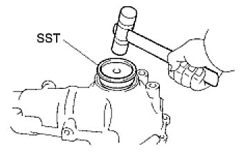 (b) Using SST and a hammer, tap in the oil seal.