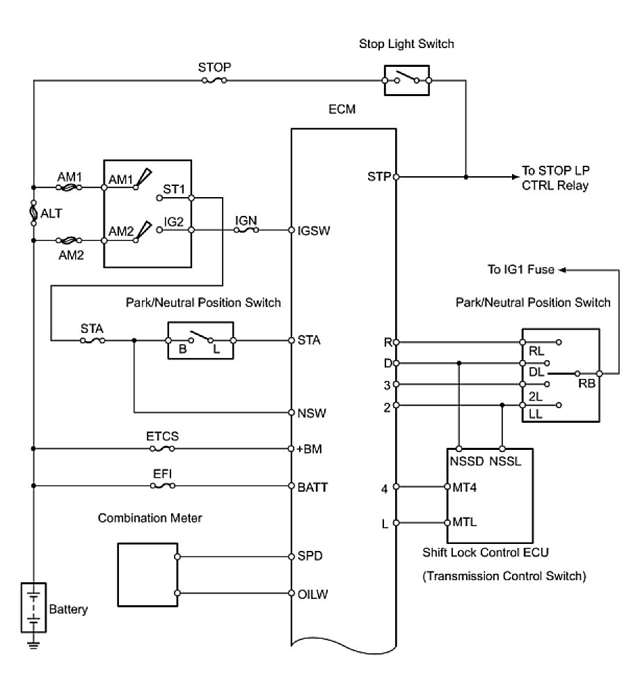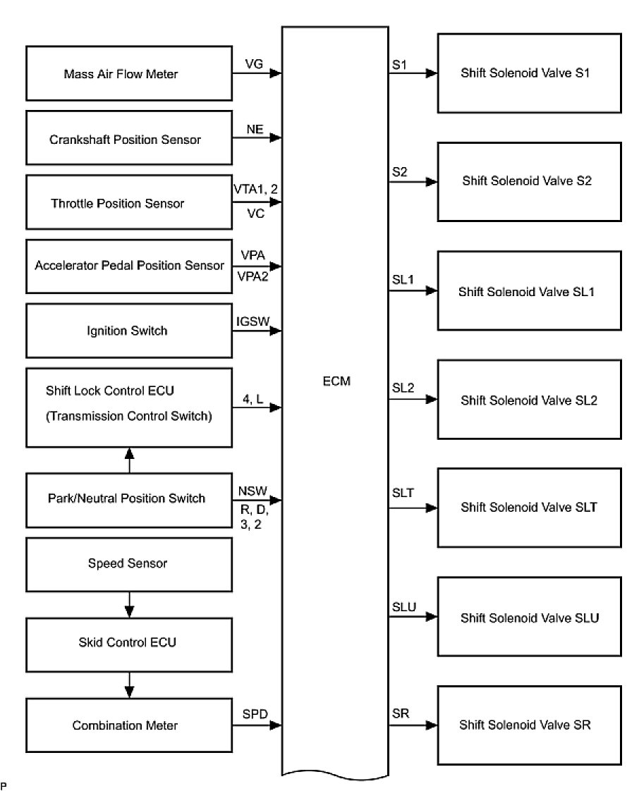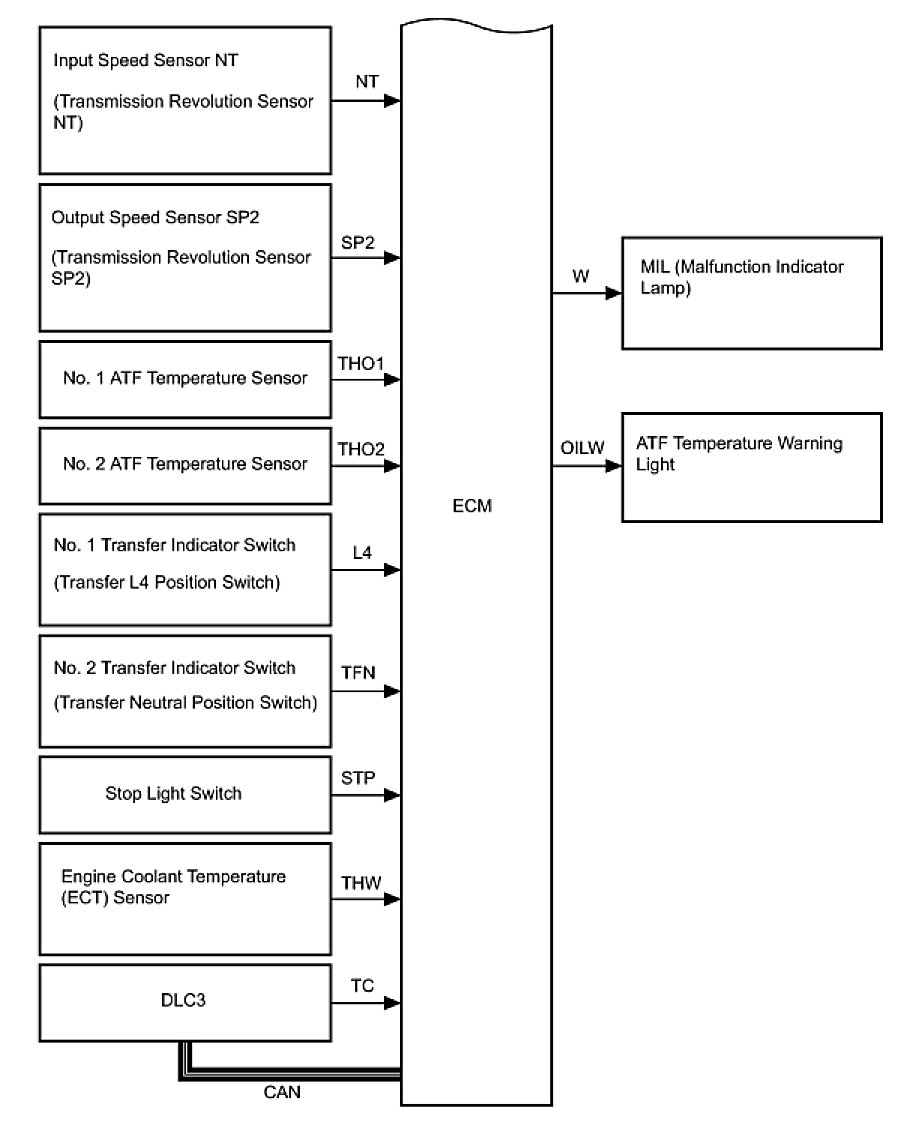 The configuration of the electronic control system in the A750F automatic transmission is as shown in the following chart.