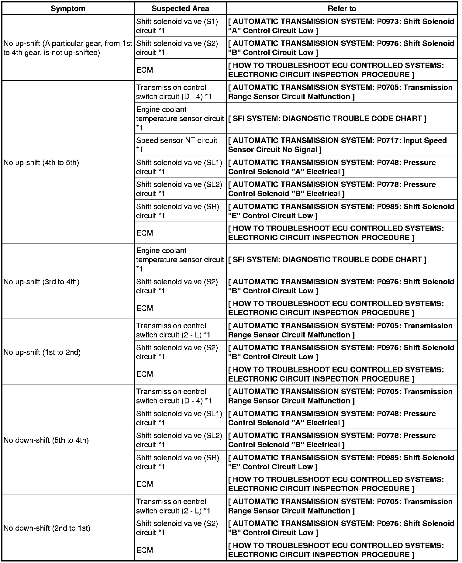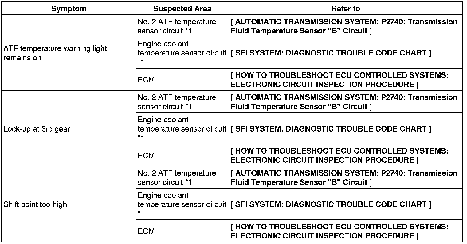- *1: Denotes that when there are malfunctions in the circuit, DTCs may be set.