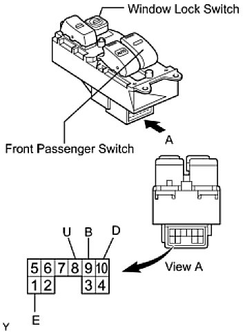 2. INSPECT POWER WINDOW REGULATOR SWITCH ASSEMBLY (PASSENGER SIDE)