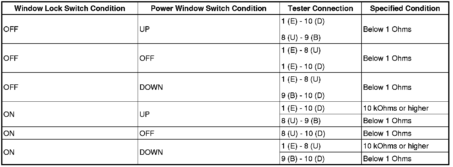 6. INSPECT POWER WINDOW REGULATOR MASTER SWITCH ASSEMBLY (FRONT PASSENGER SWITCH)
