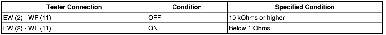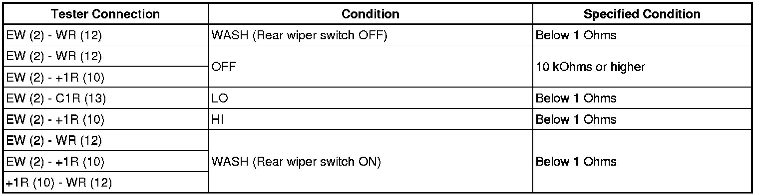 If the result is not as specified, replace the windshield wiper switch.