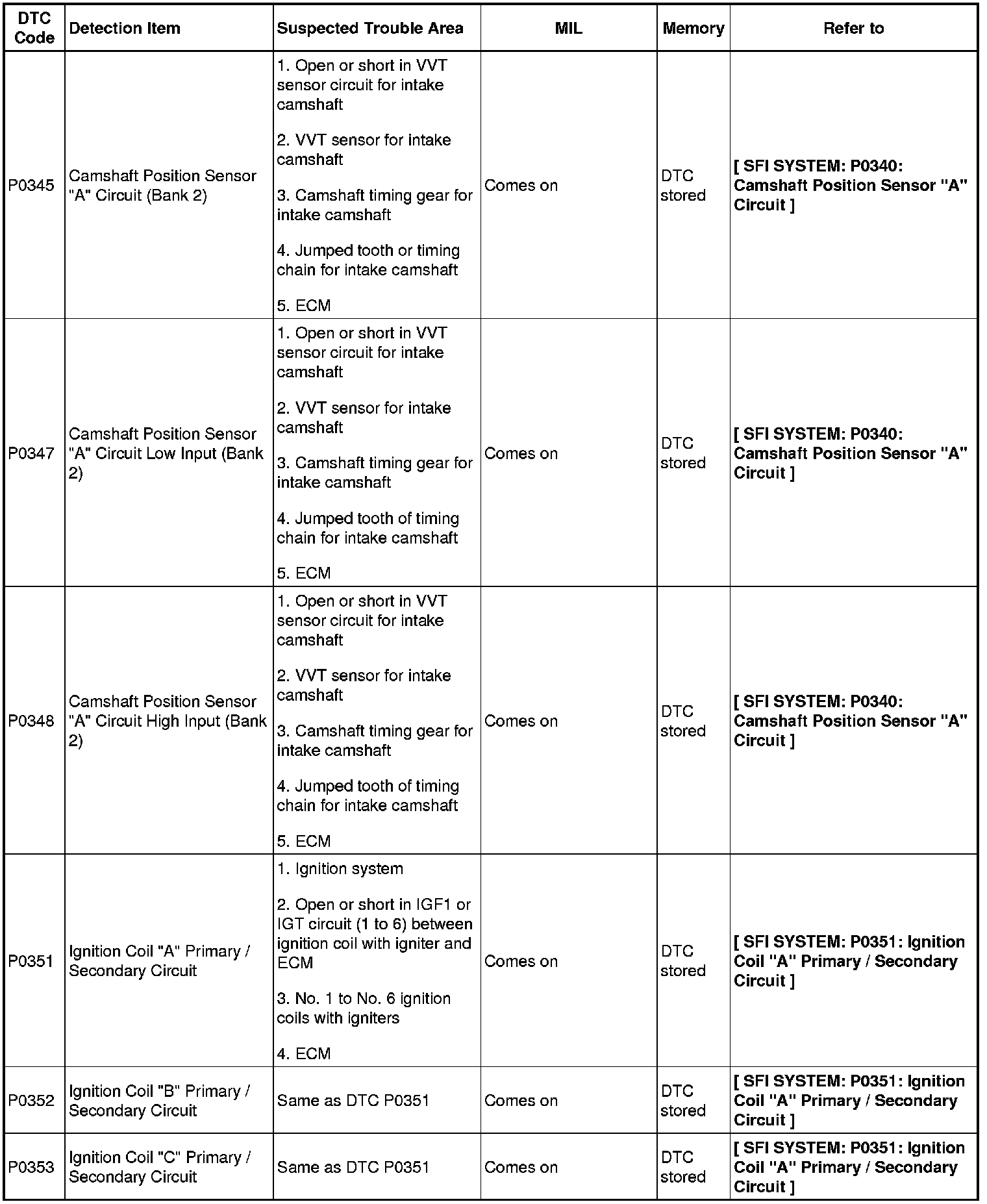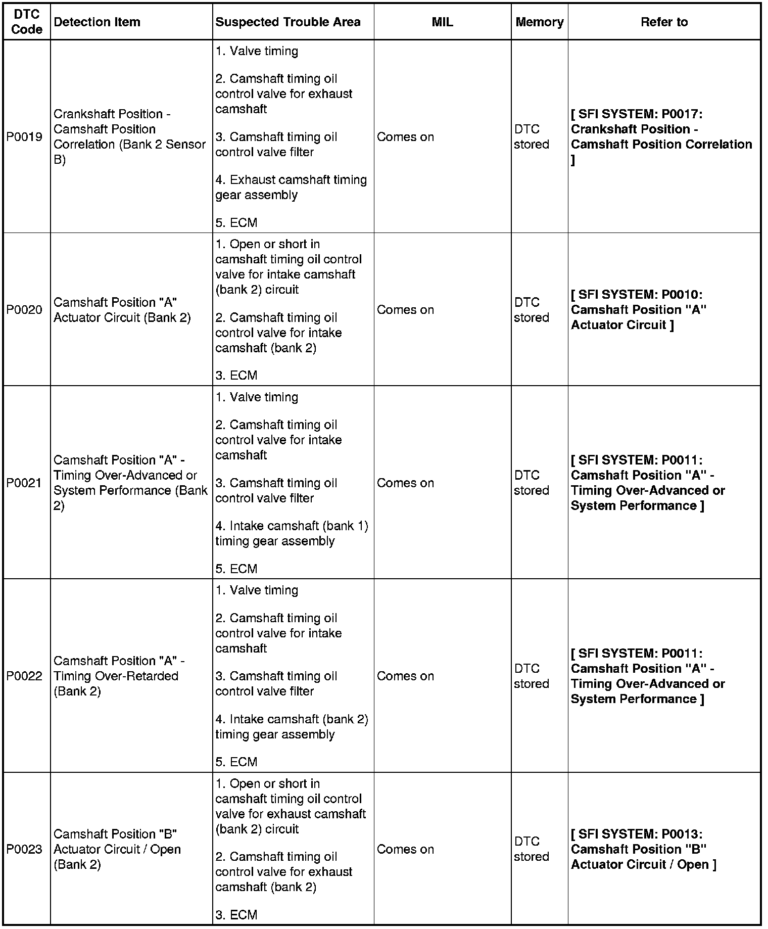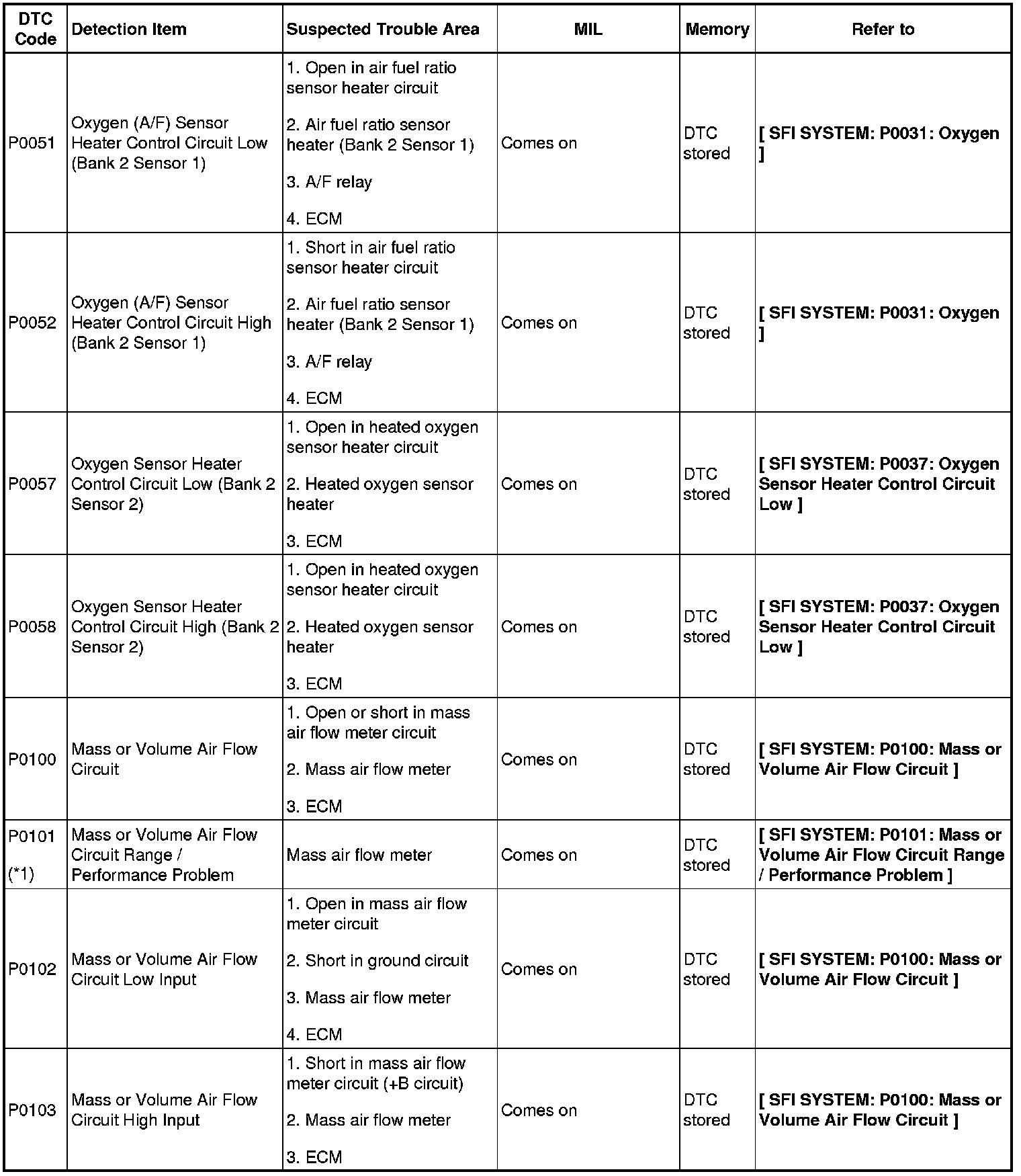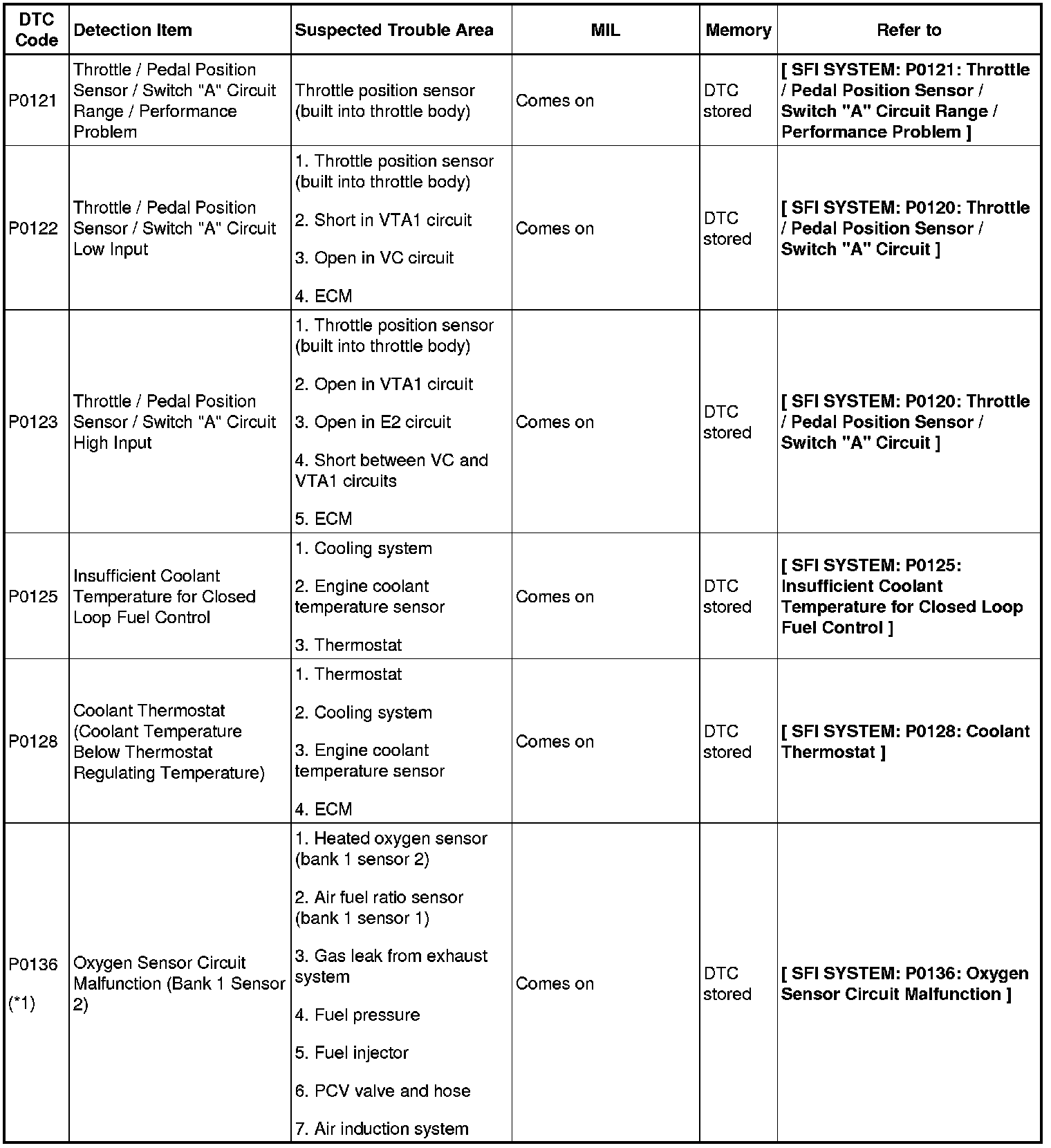 2GR-FE ENGINE CONTROL SYSTEM: SFI SYSTEM: DIAGNOSTIC TROUBLE CODE CHART