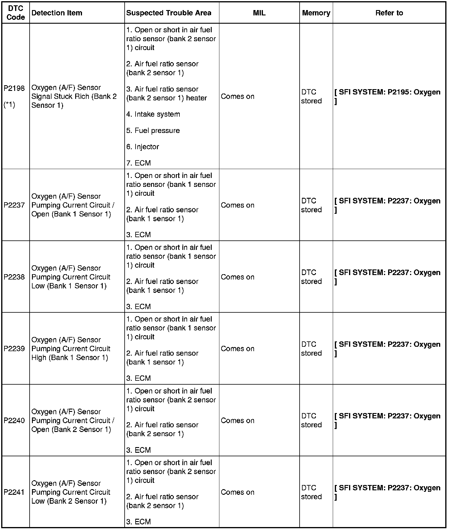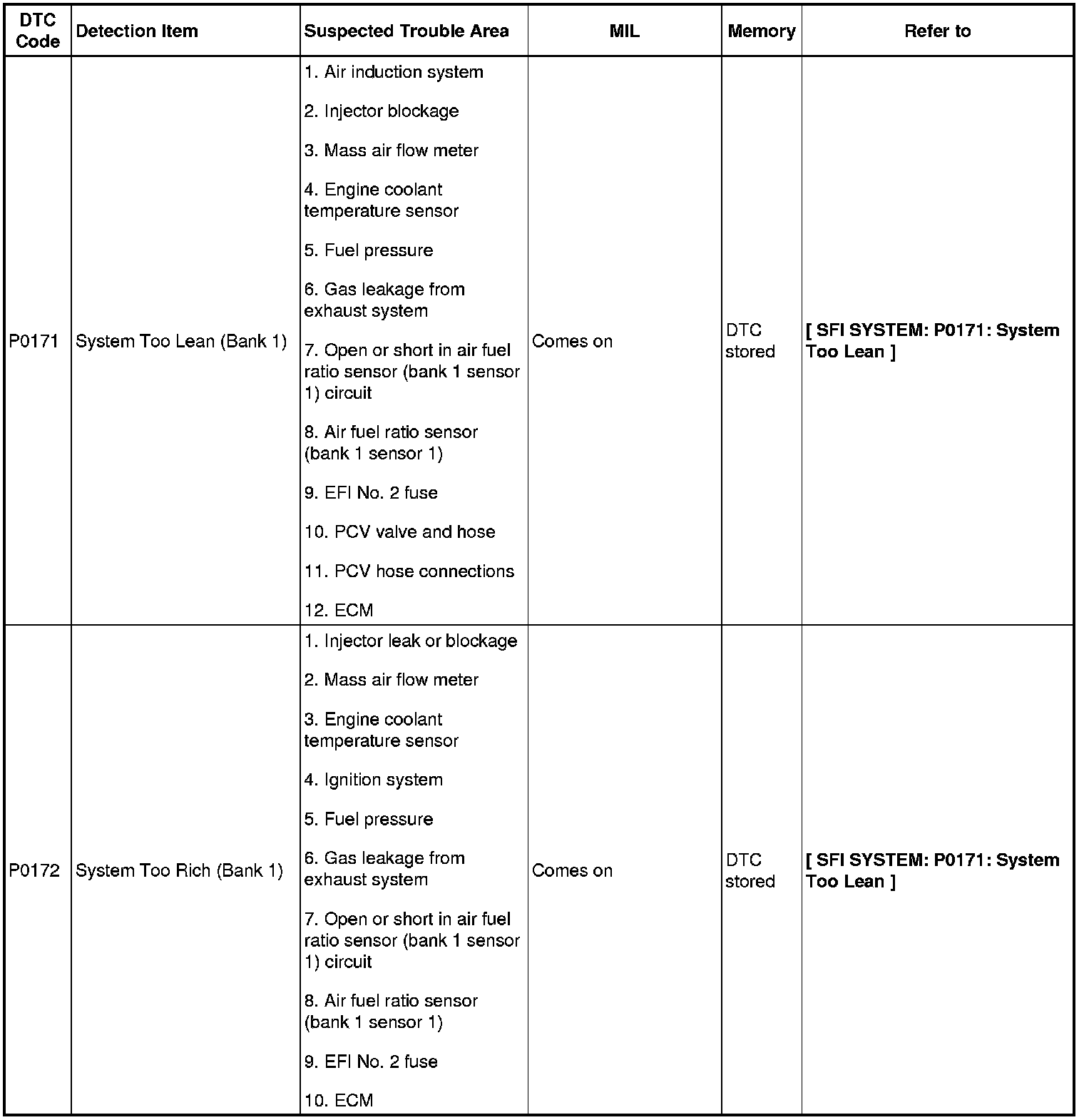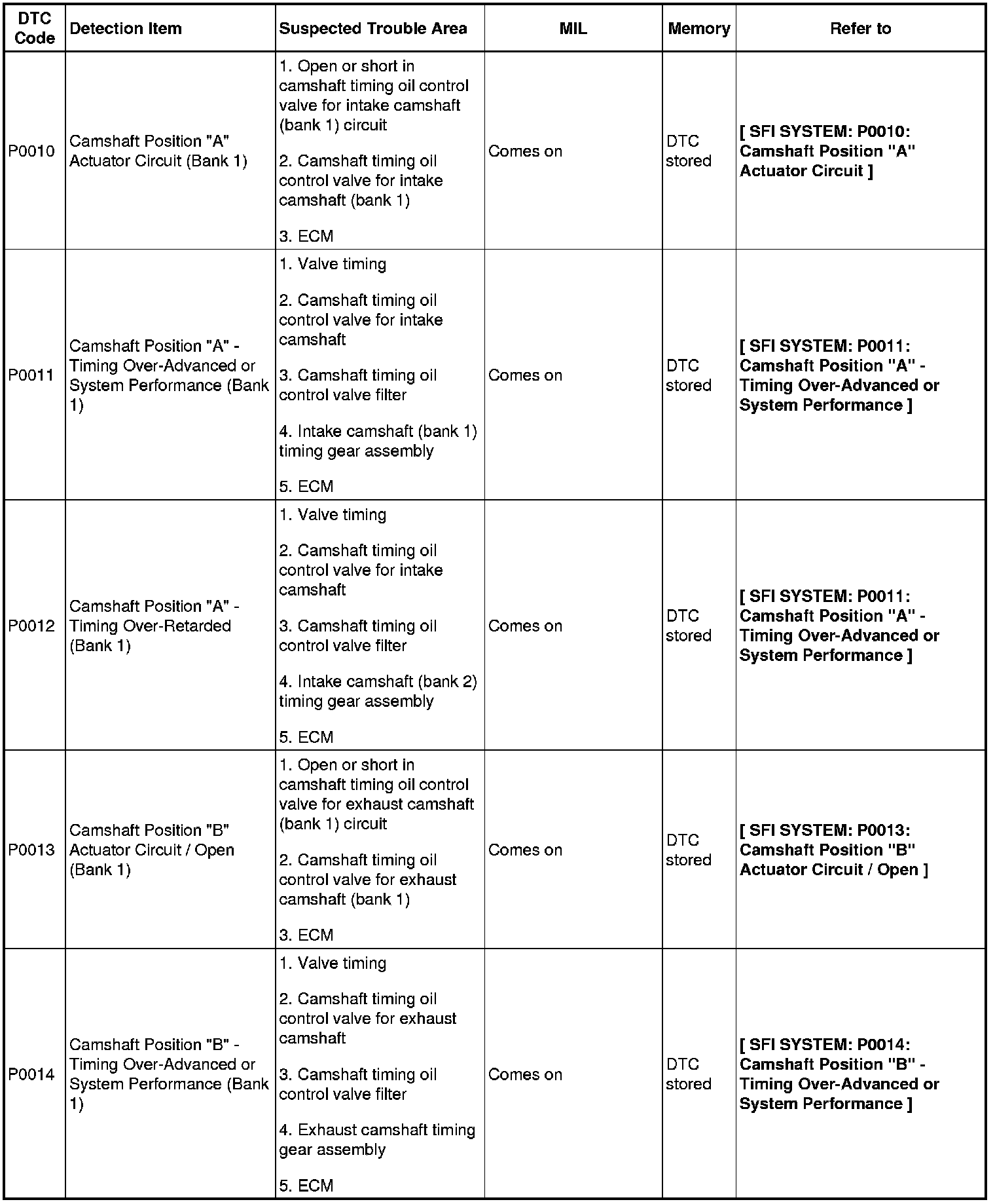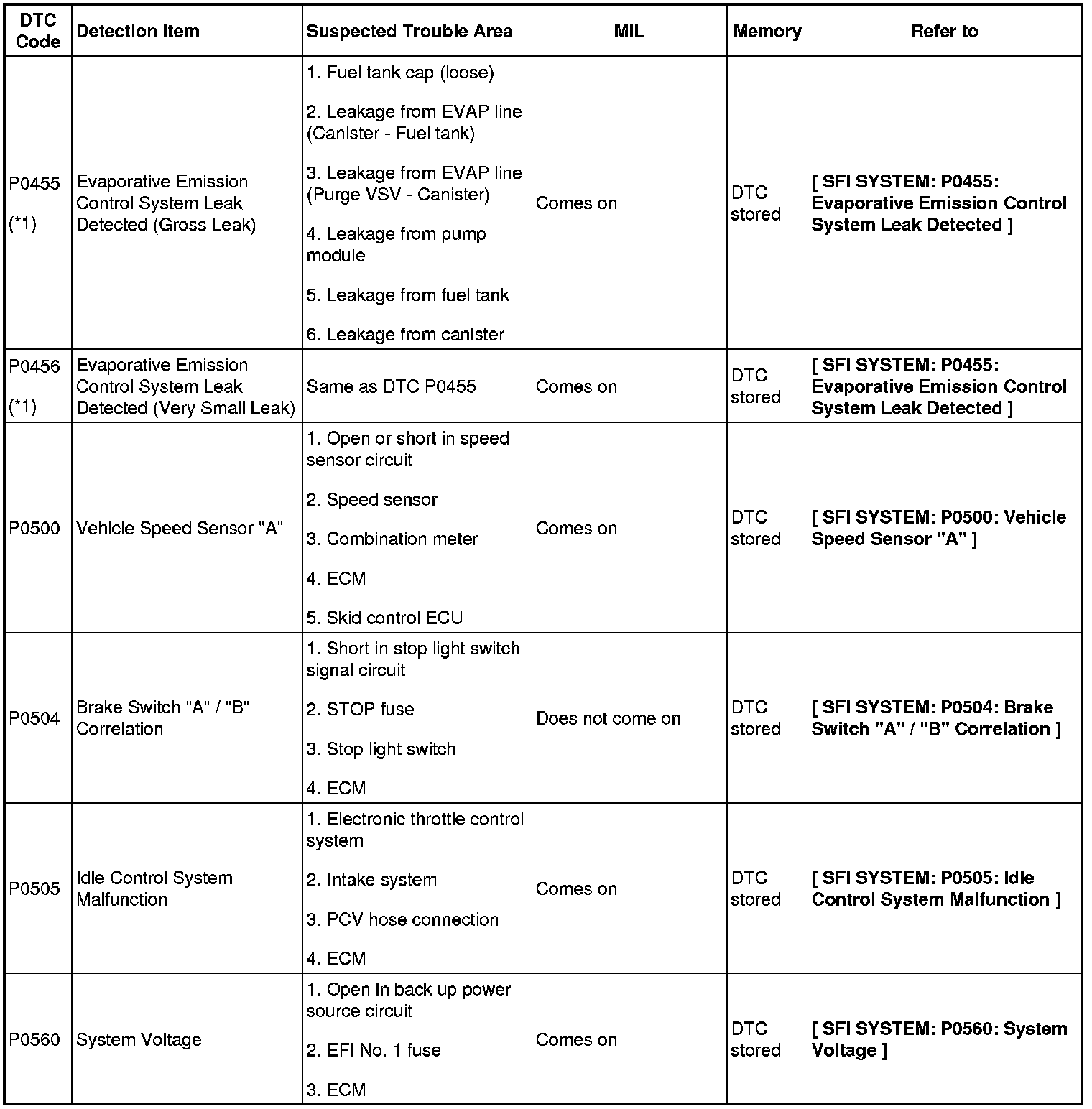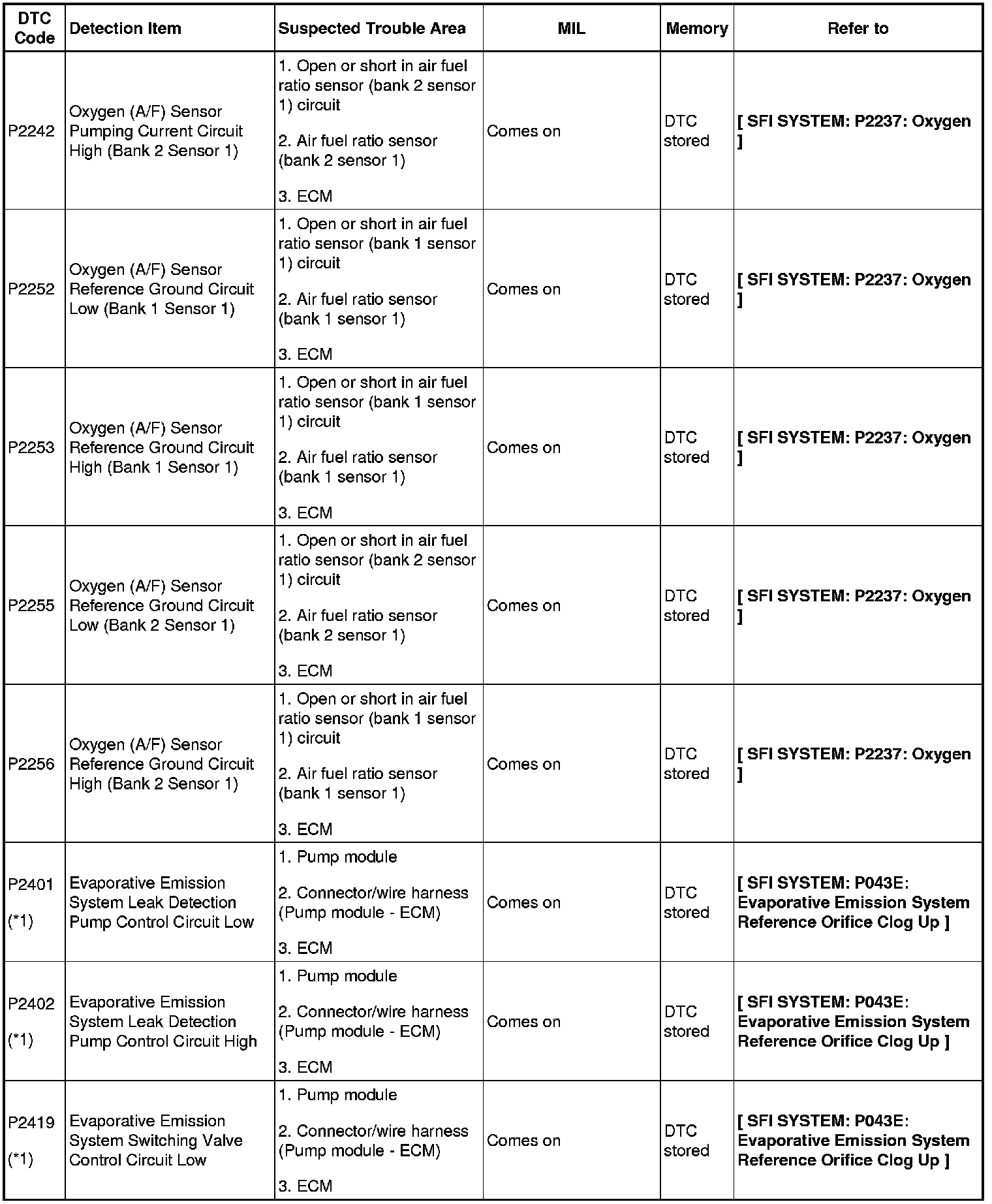 2GR-FE ENGINE CONTROL SYSTEM: SFI SYSTEM: DIAGNOSTIC TROUBLE CODE CHART