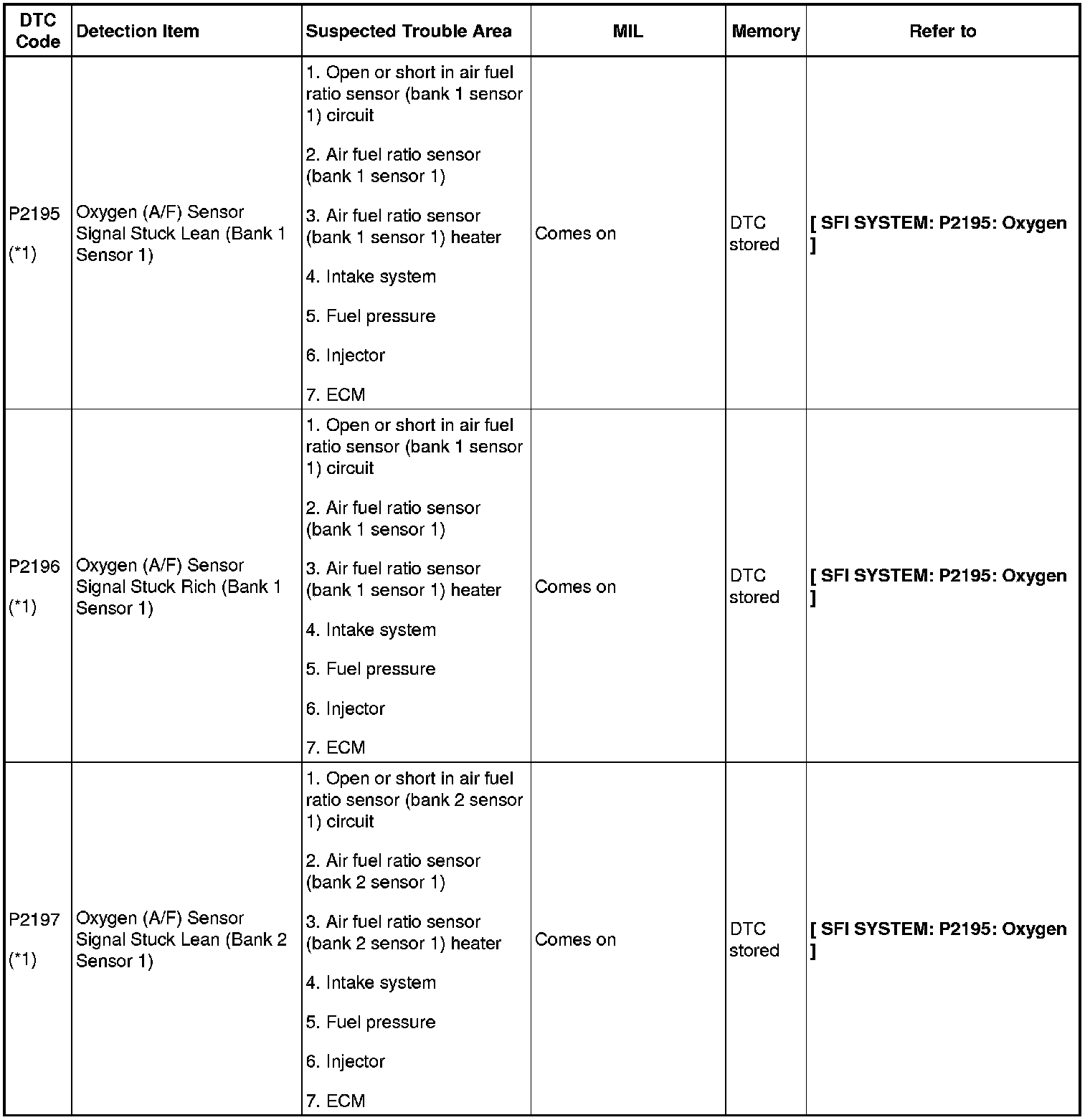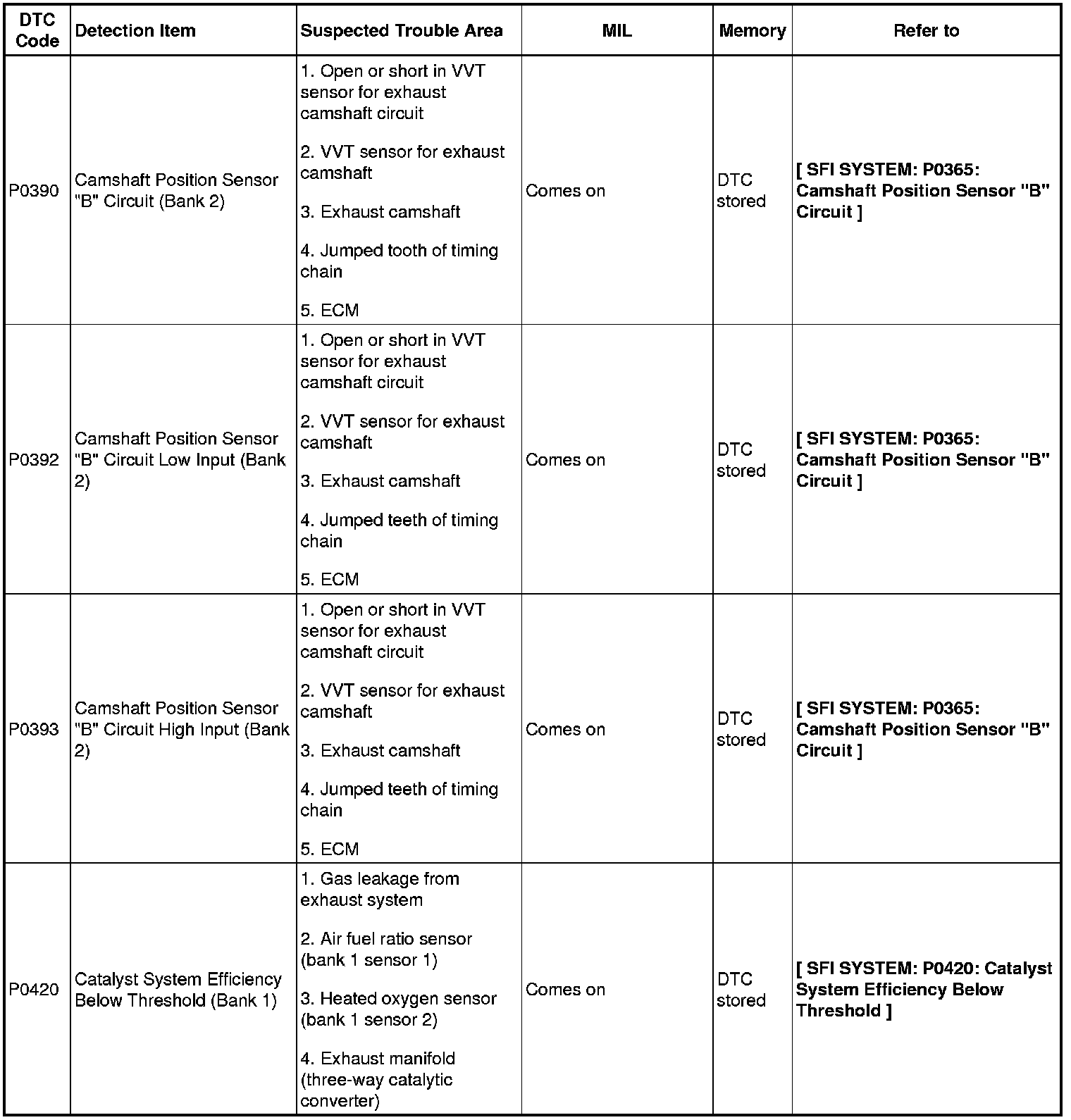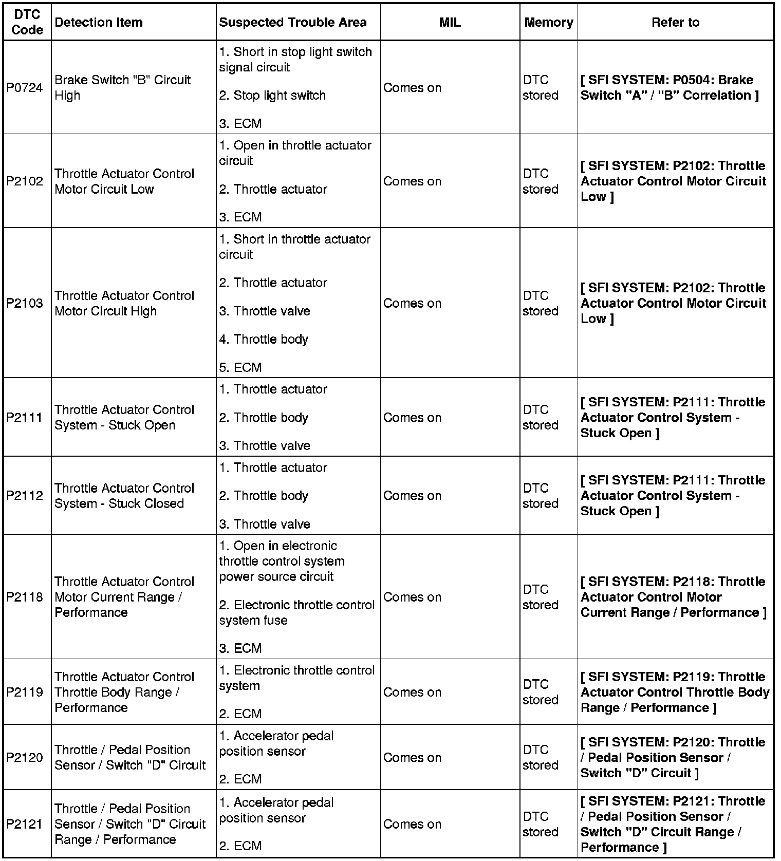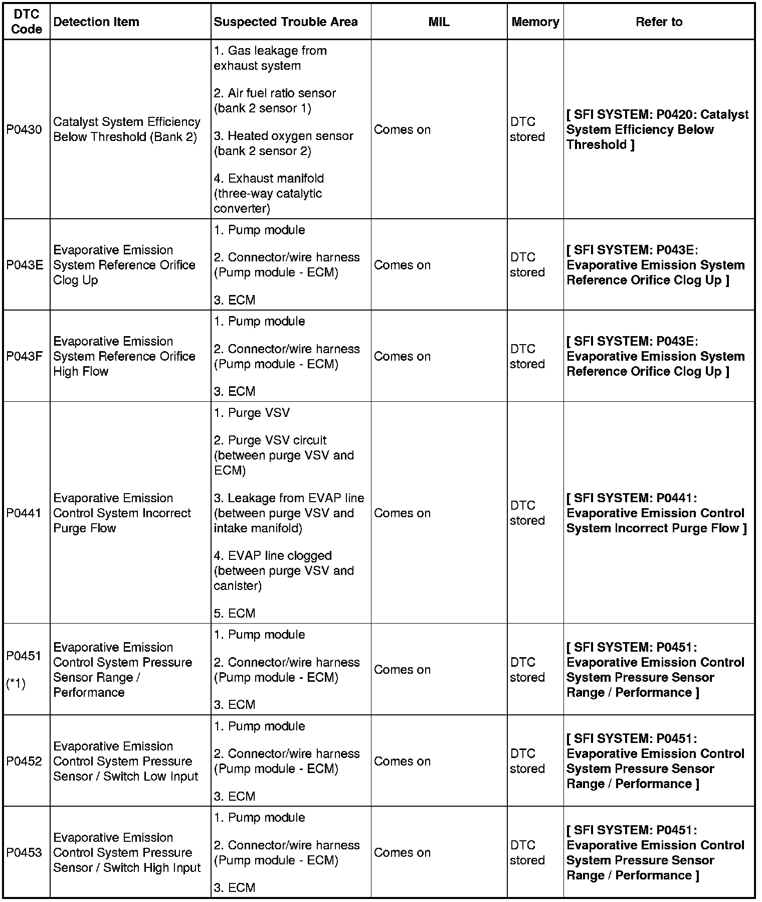 2GR-FE ENGINE CONTROL SYSTEM: SFI SYSTEM: DIAGNOSTIC TROUBLE CODE CHART