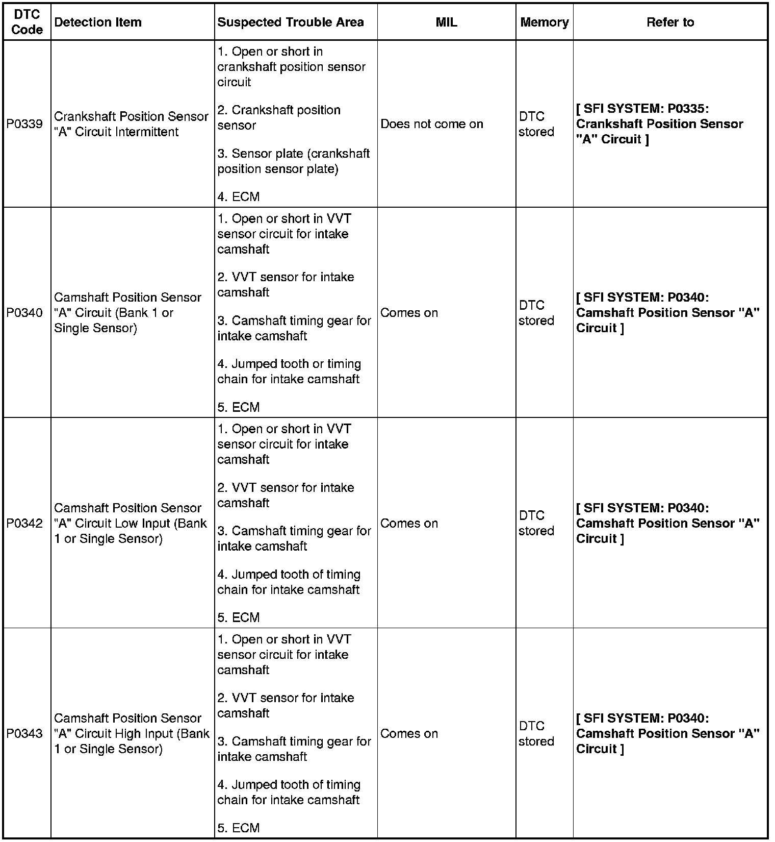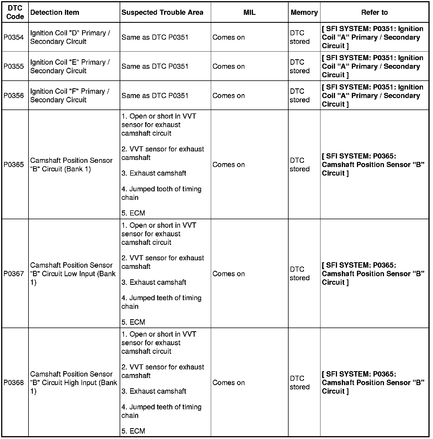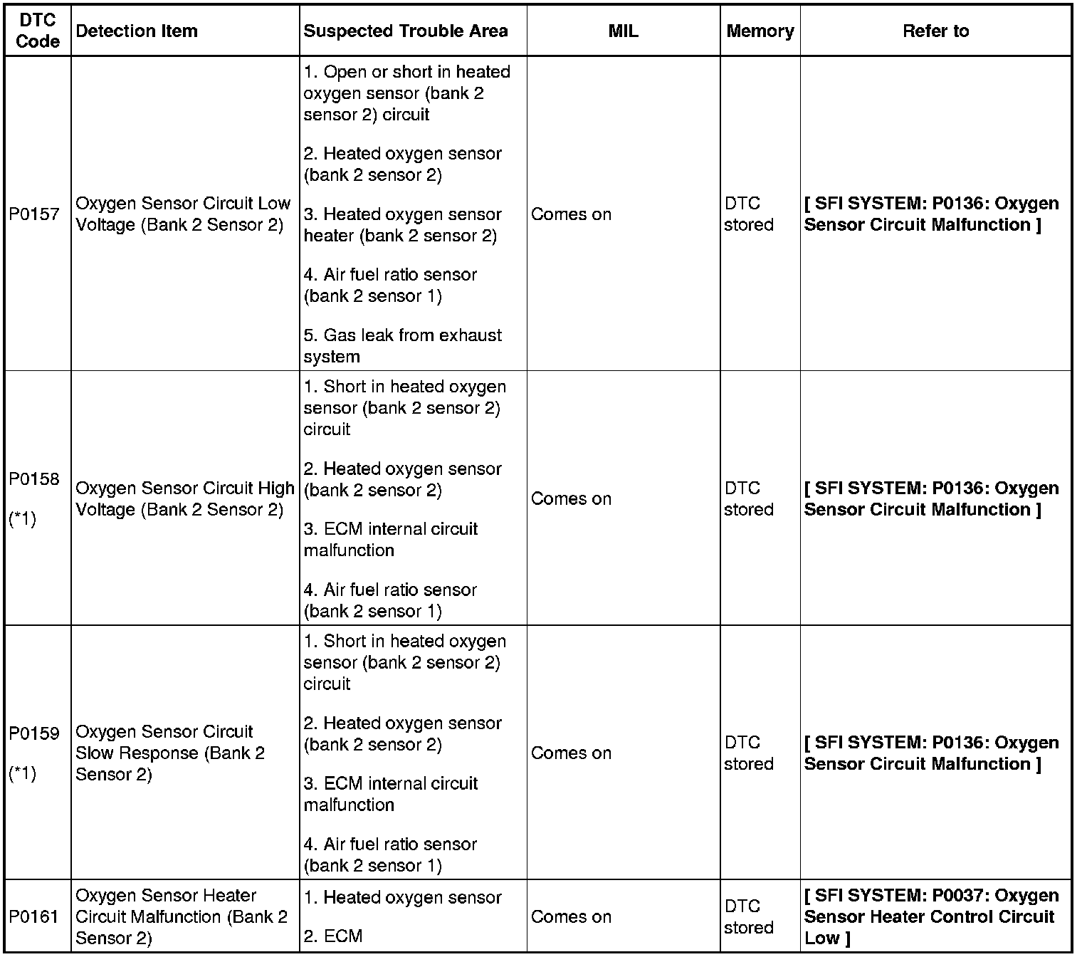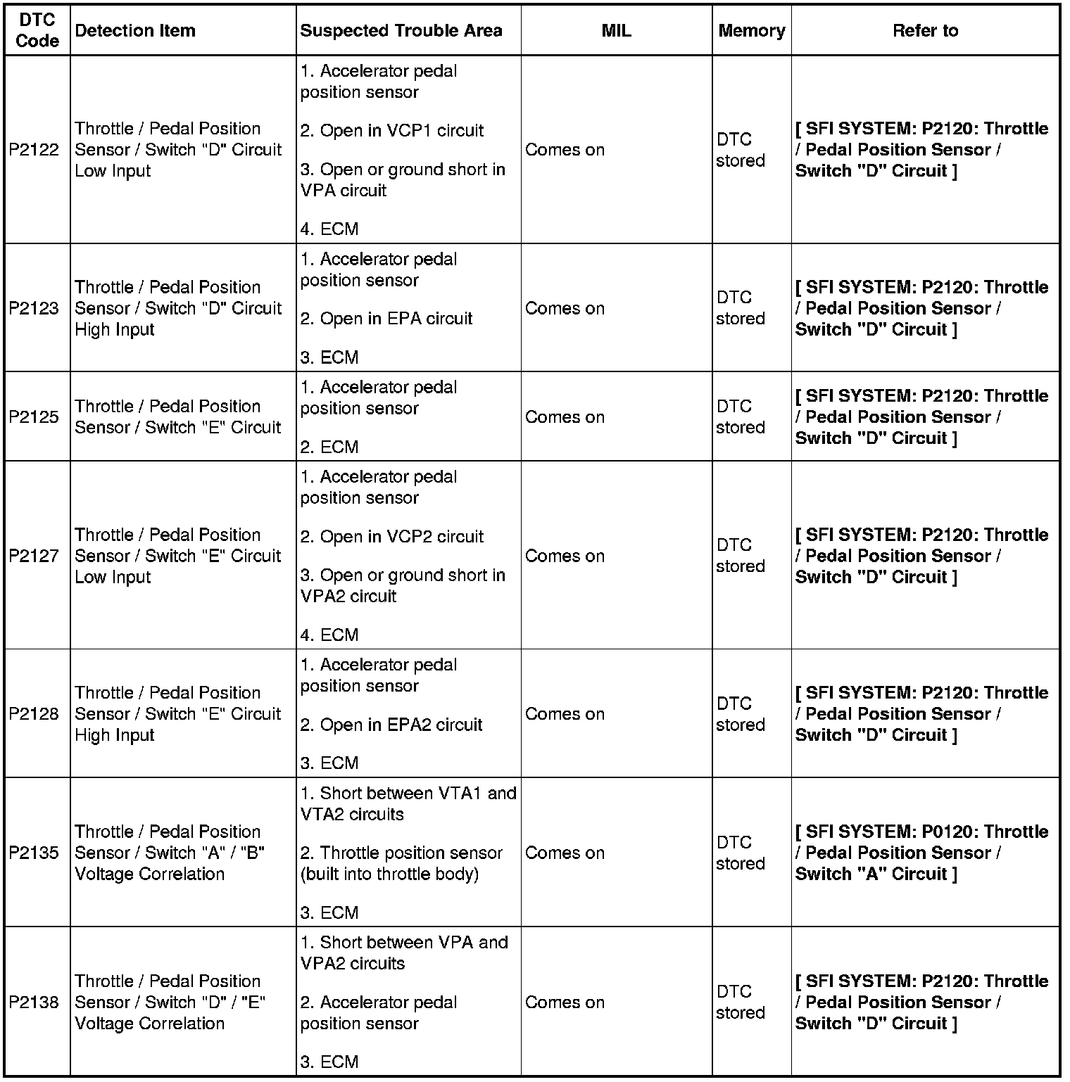 2GR-FE ENGINE CONTROL SYSTEM: SFI SYSTEM: DIAGNOSTIC TROUBLE CODE CHART