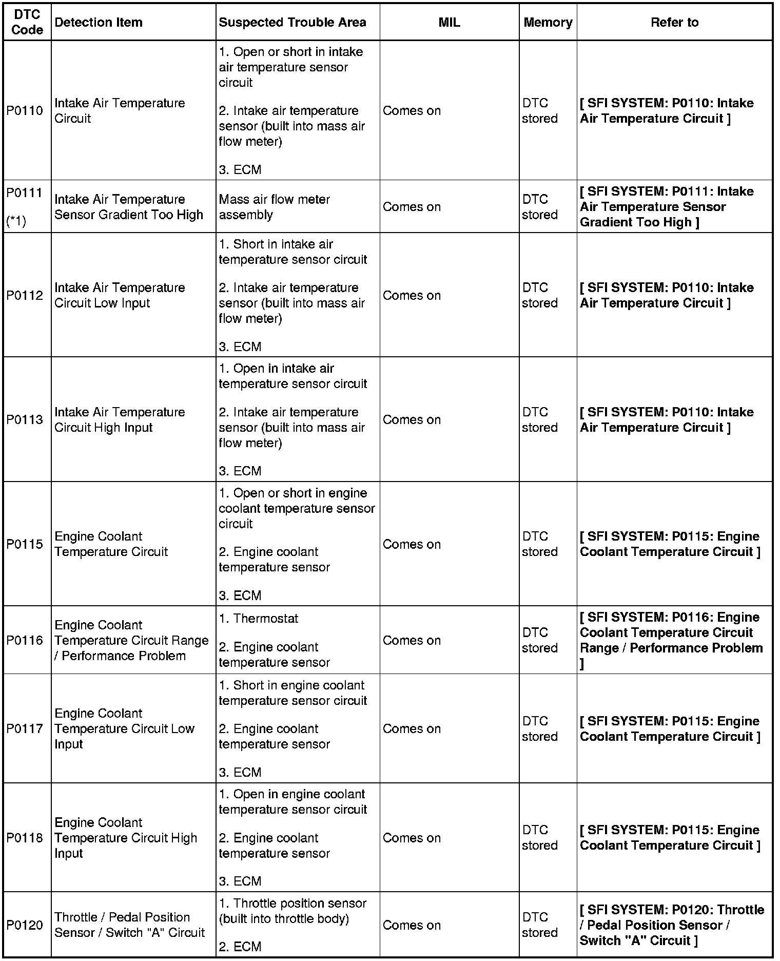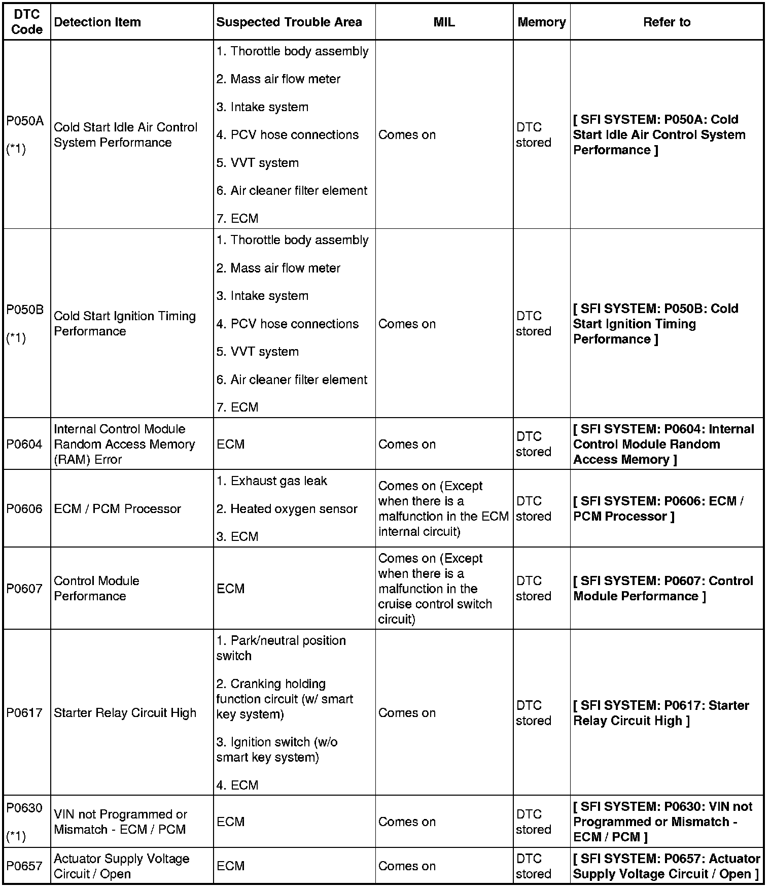 DIAGNOSTIC TROUBLE CODE CHART