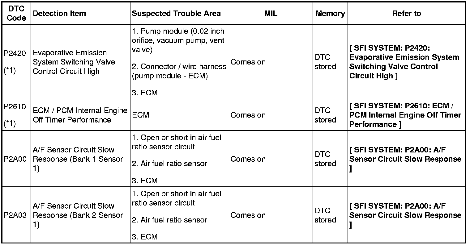 HINT: The parameters listed in the chart may not confirm exactly to those read during the DTC check due to the type of instrument or other factors.