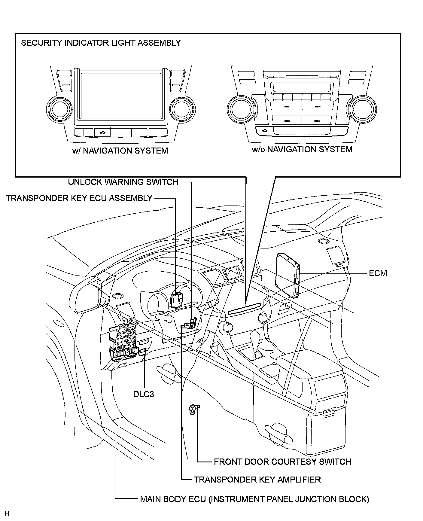 ENGINE IMMOBILISER: ENGINE IMMOBILISER SYSTEM (w/o Smart Key System): PARTS LOCATION