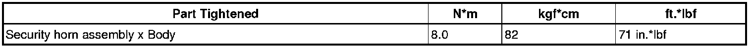 SERVICE SPECIFICATIONS: THEFT DETERRENT SYSTEM: TORQUE SPECIFICATIONS