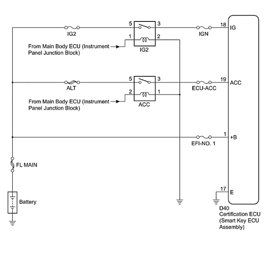 This is the power source circuit of the certification ECU (smart key ECU assembly).