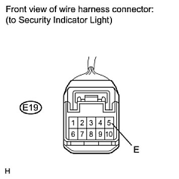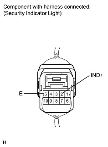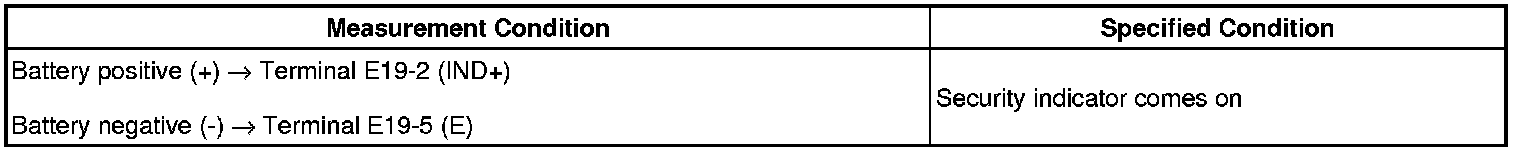 (b) Apply battery voltage from the wire harness back side between the terminals of the indicator, and check the lighting condition of the security indicator.