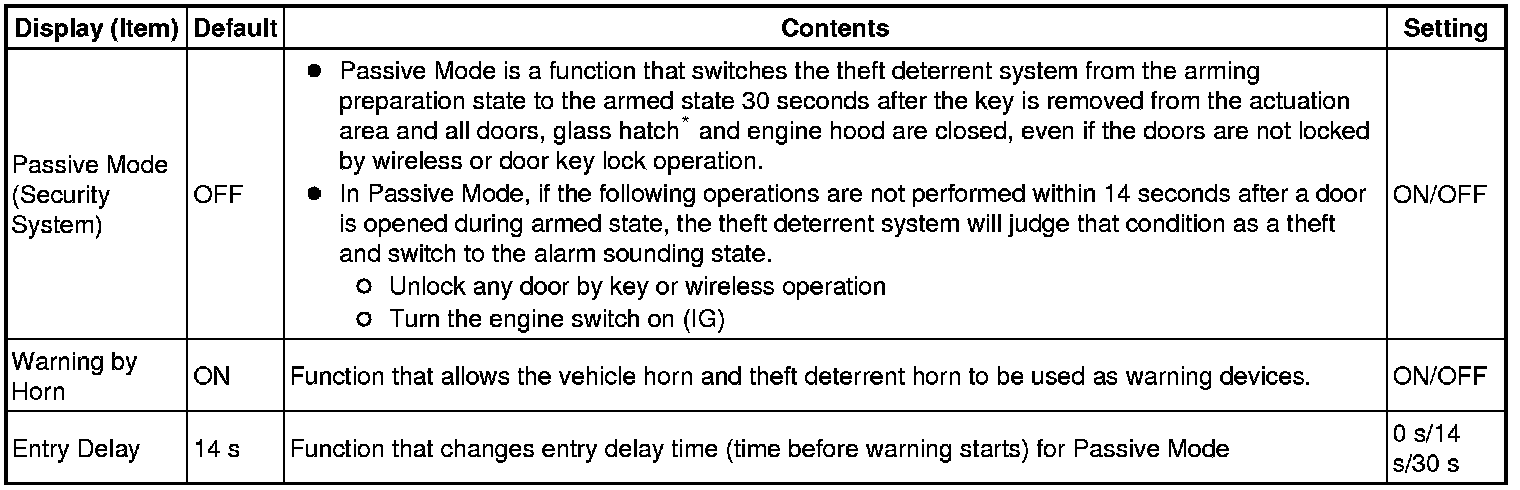 THEFT DETERRENT: THEFT DETERRENT SYSTEM (w/ Smart Key System): CUSTOMIZE PARAMETERS