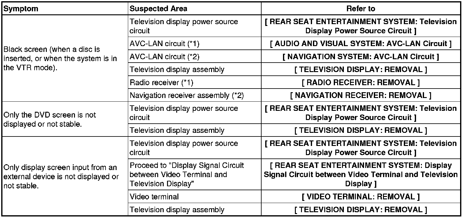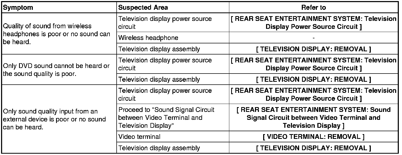 AUDIO / VISUAL: REAR SEAT ENTERTAINMENT SYSTEM: PROBLEM SYMPTOMS TABLE
