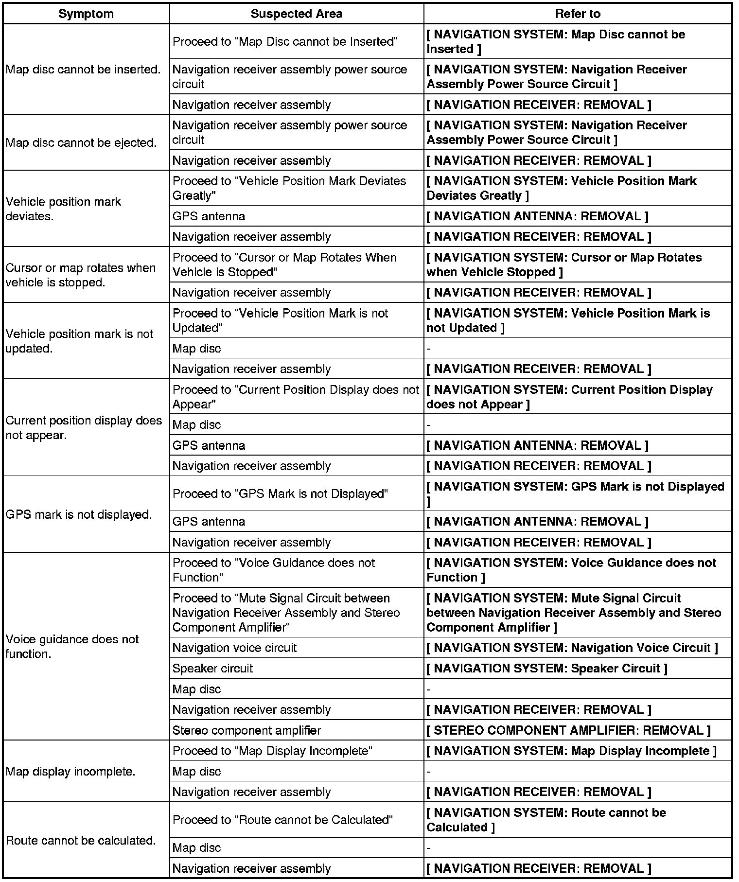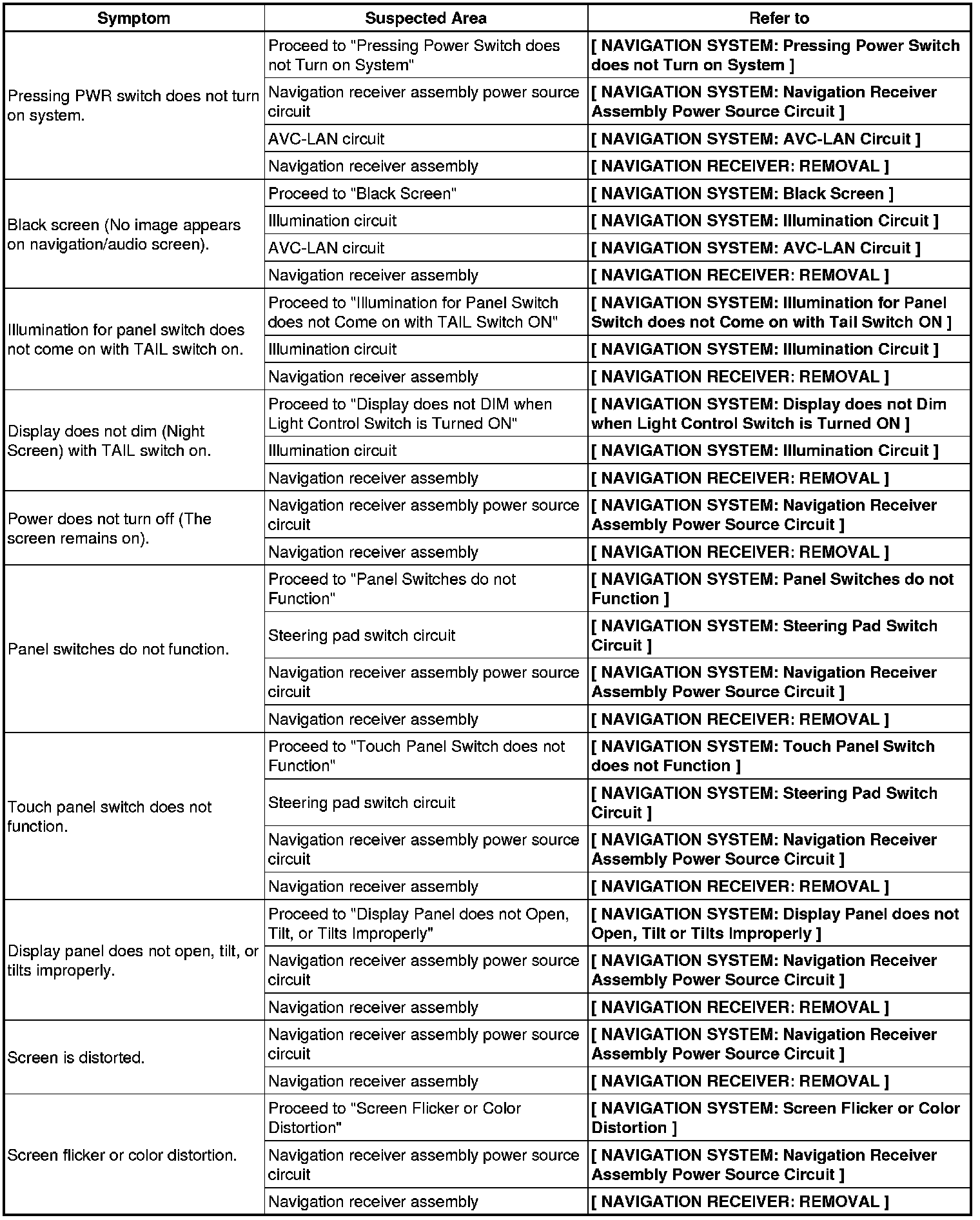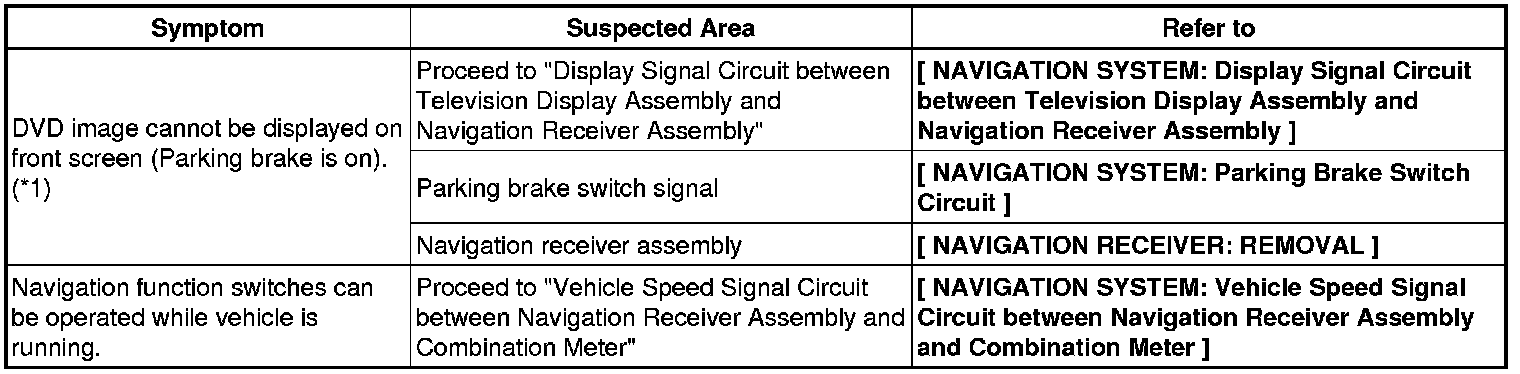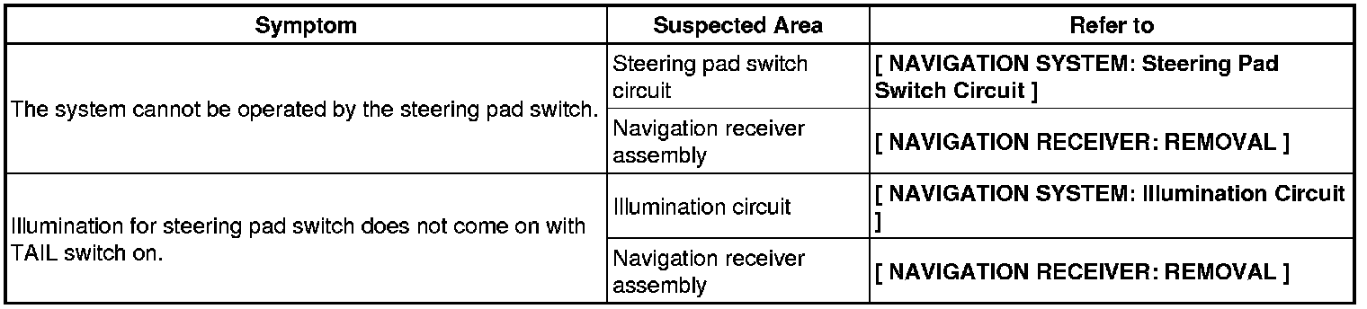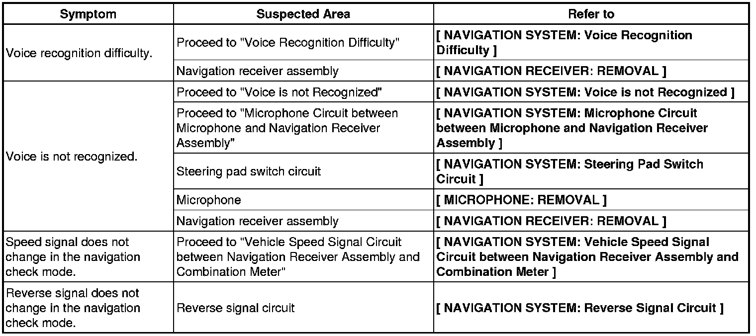 NAVIGATION: NAVIGATION SYSTEM: PROBLEM SYMPTOMS TABLE