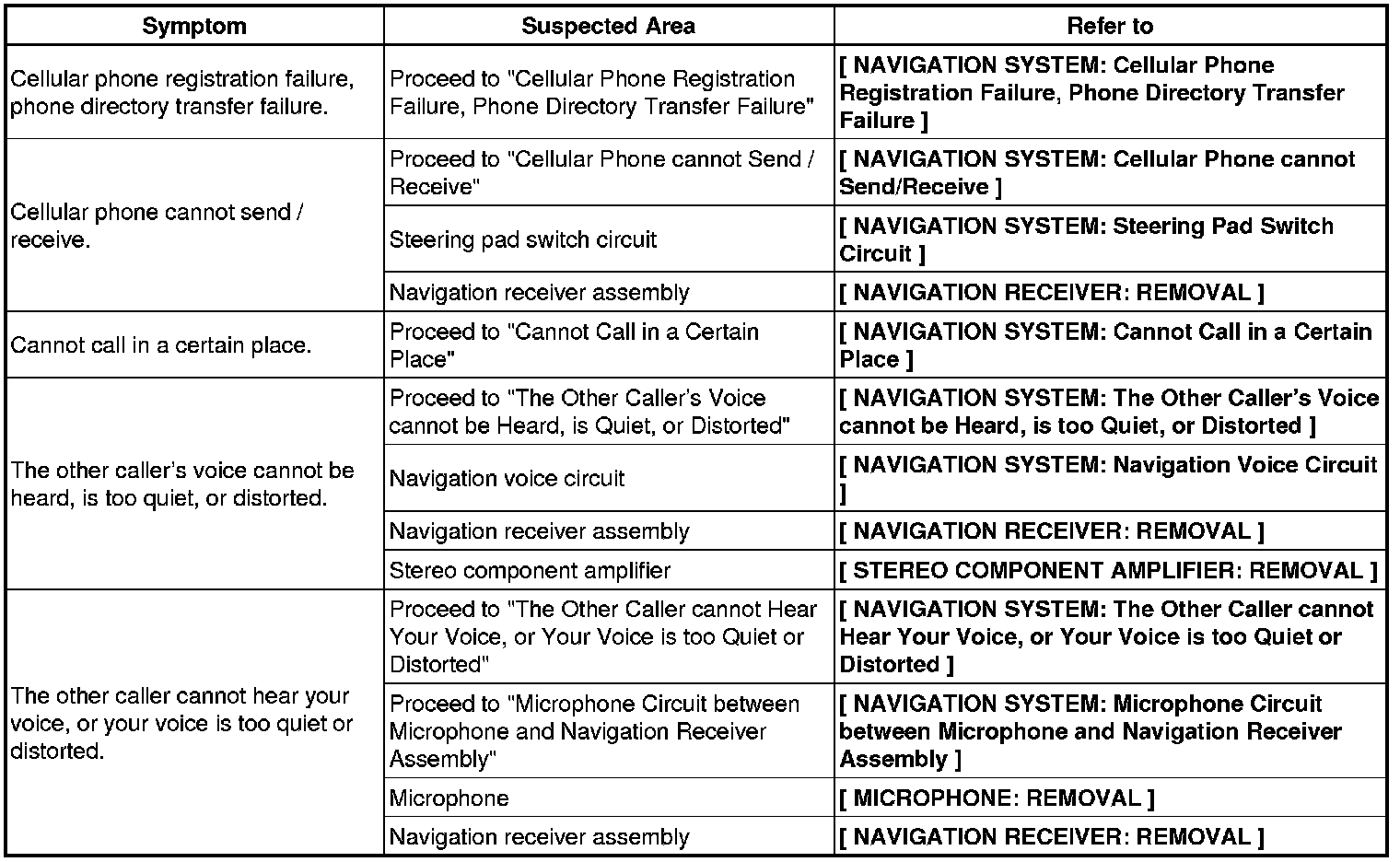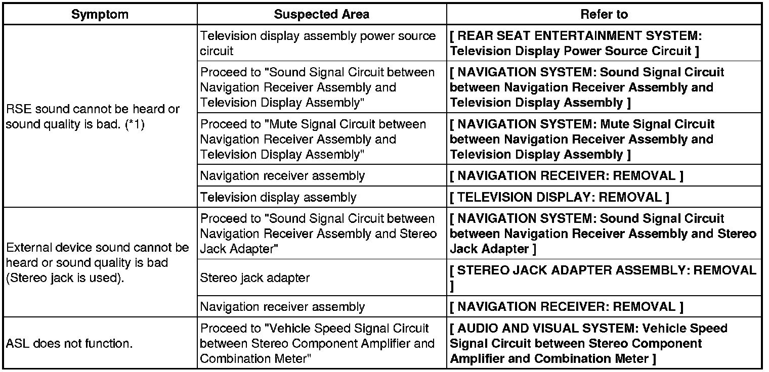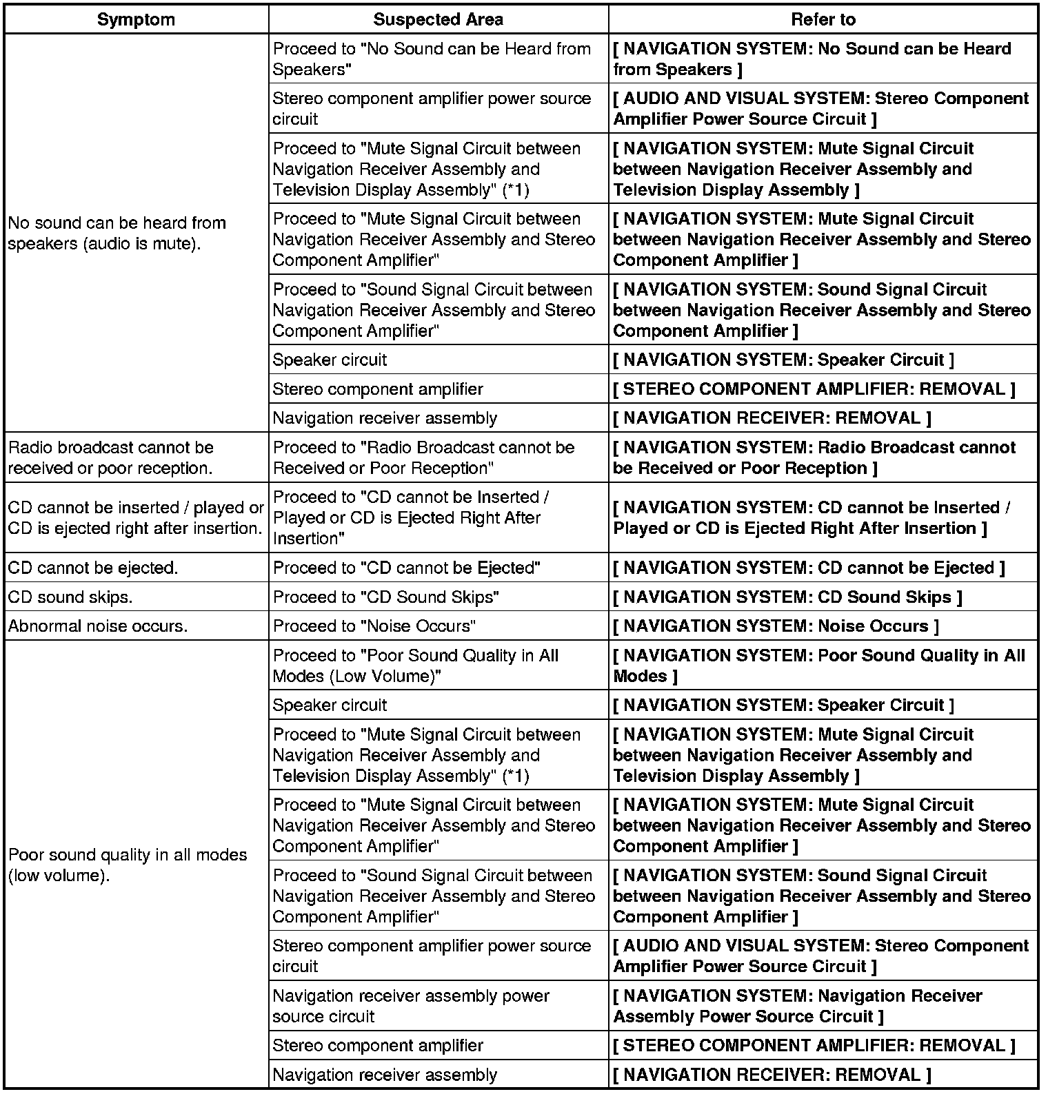 NAVIGATION: NAVIGATION SYSTEM: PROBLEM SYMPTOMS TABLE