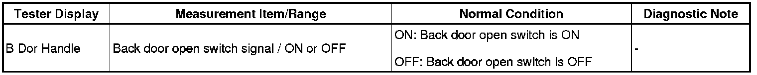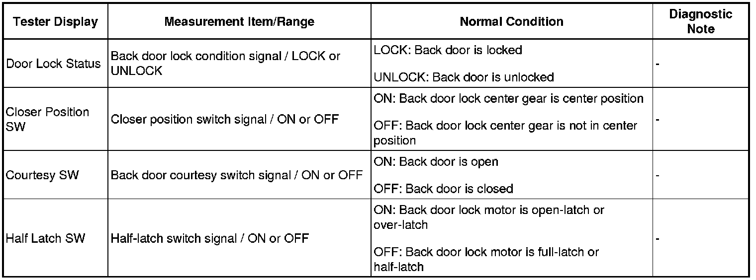 Select: Body Electrical / Back Door or Main Body / Data List /