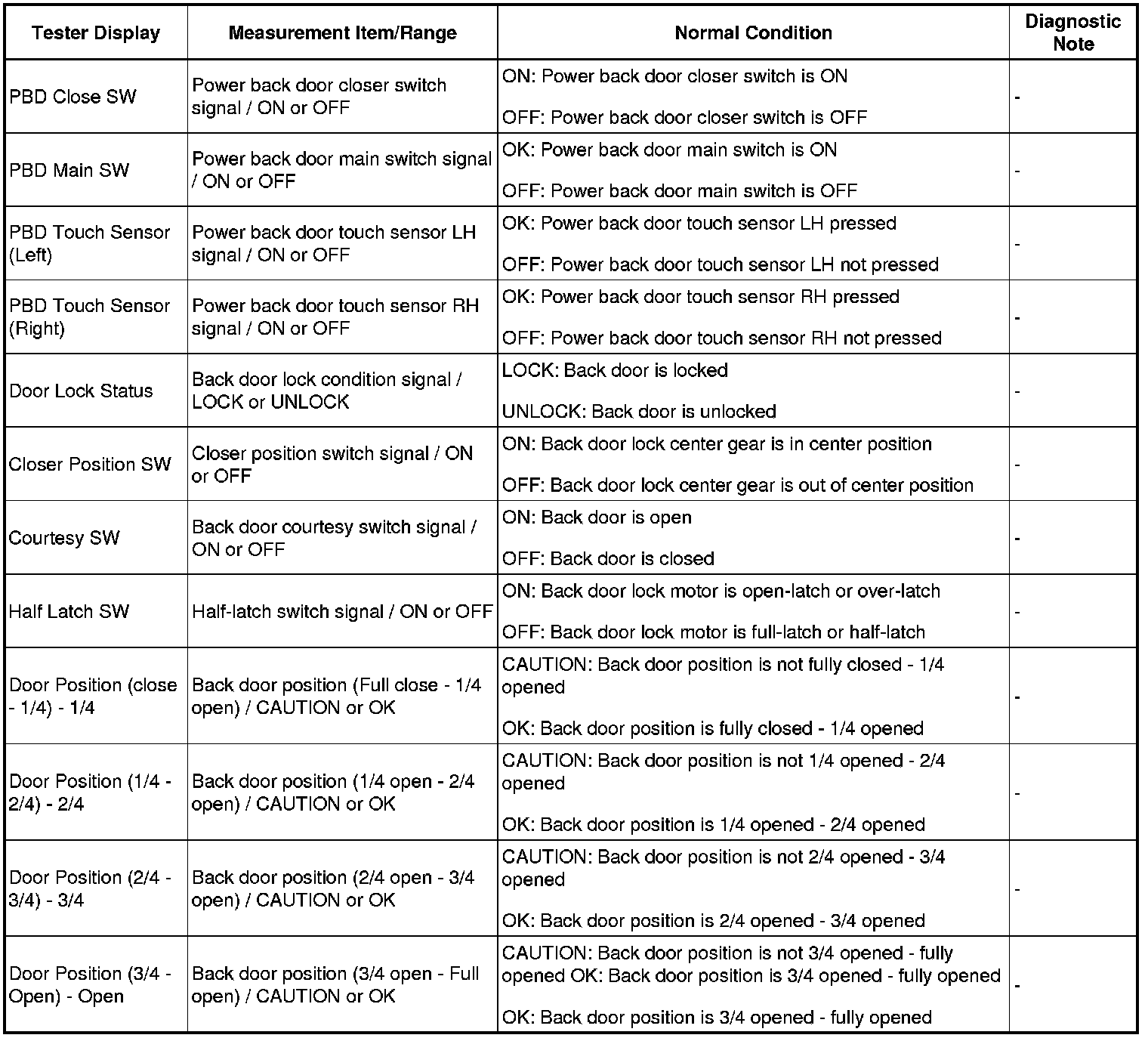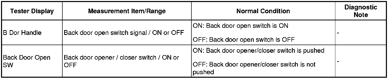 Select: Body Electrical / Back Door or Main Body / Data List /
