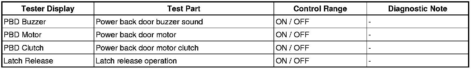 ENGINE HOOD / DOOR: POWER BACK DOOR SYSTEM: DATA LIST / ACTIVE TEST