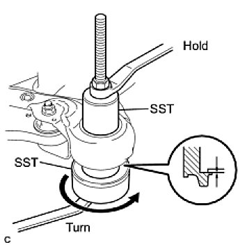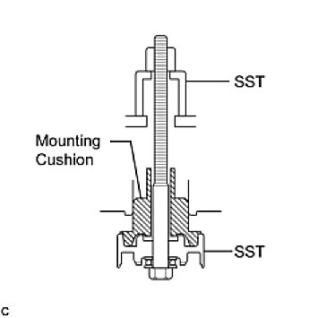 (c) Using SST, install the front suspension member body mounting rear cushion LH as shown in the illustration.