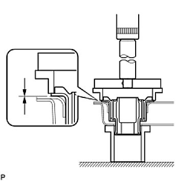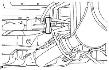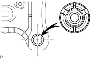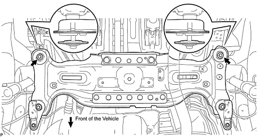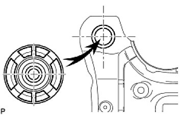 (c) While observing from the side, press in the rear suspension member body mounting front cushion LH until there is no clearance between the rear suspension member body mounting front cushion LH and the rear suspension member sub-assembly as shown in the illustration.