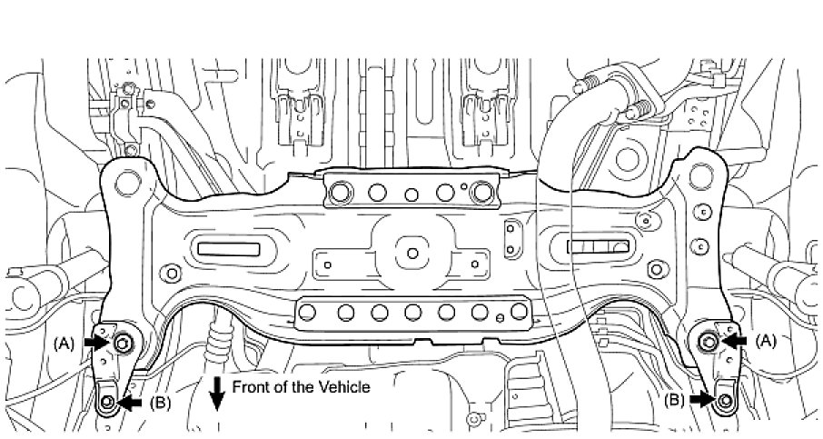 NOTE: When removing the rear suspension member, be careful not to damage the vehicle body or other components installed on the vehicle.