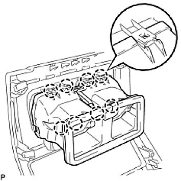(a) Engage the 8 claws and install the console box register assembly to the console rear end panel.